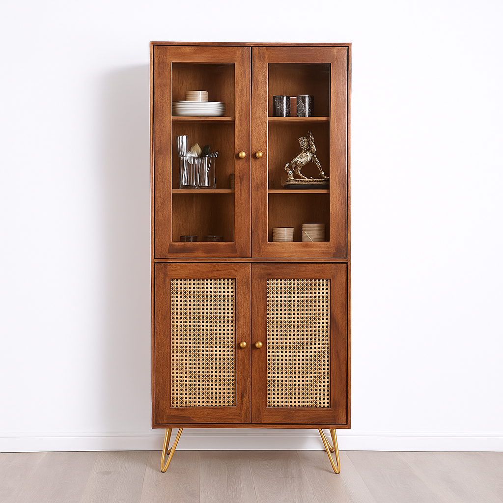 Nay-7 Sheesham Wood 4 Door Soft Closed Shelves Storage Kitchen Cabinet ( Honey Finish )