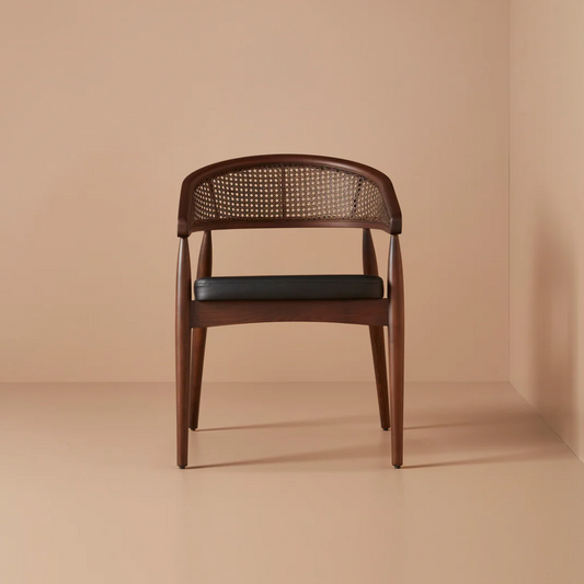 Suryavanshi Mid-Century Modern Cane Back Accent Chair in Mango Wood with Cushioned Seat