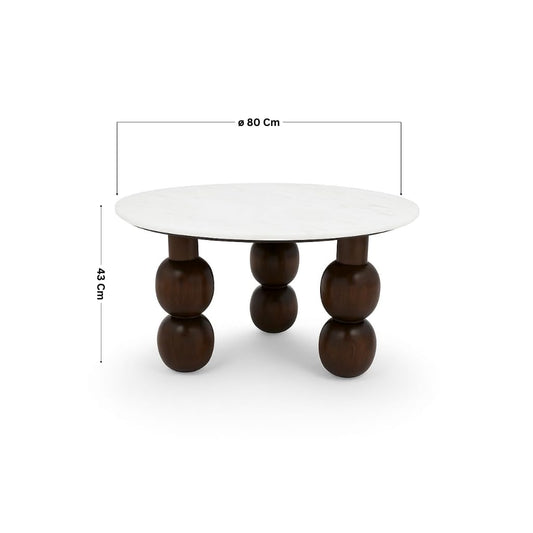 Suryavanshi Premium Round Center Table with Banswara White Marble Top & Solid Wood Ball Legs – Modern Coffee Table