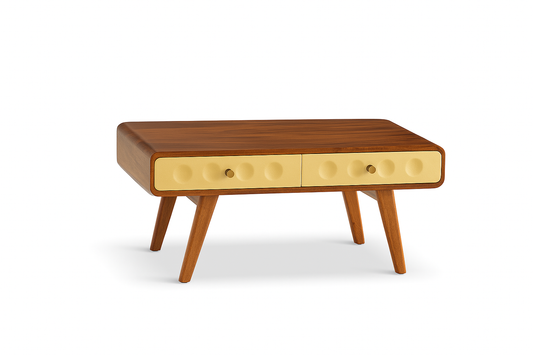 Suryavanshi Mid-Century Modern Coffee Table with 2 Drawers - Honey Finish