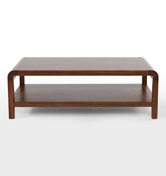 Suryavanshi Solid Sheesham Wood Coffee Table with Open Shelf Storage for Living Room | Natural Walnut Finish | Rectangular Center Table