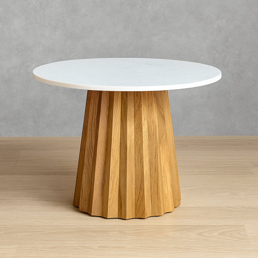 Suryavanshi Furniture Flute Coffee Table Base Mango Wood With White Marble Top (W98 x D61 x H46 cm)