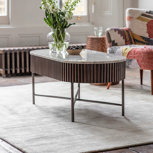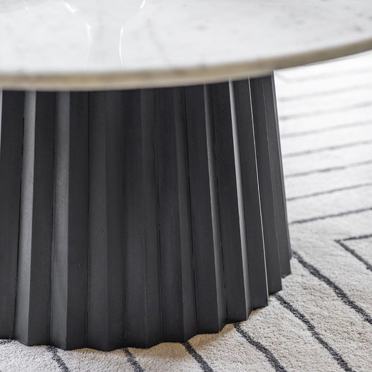 Jude Fluted Marble Top With Mango Wood Base Coffee Table - Natural Finish