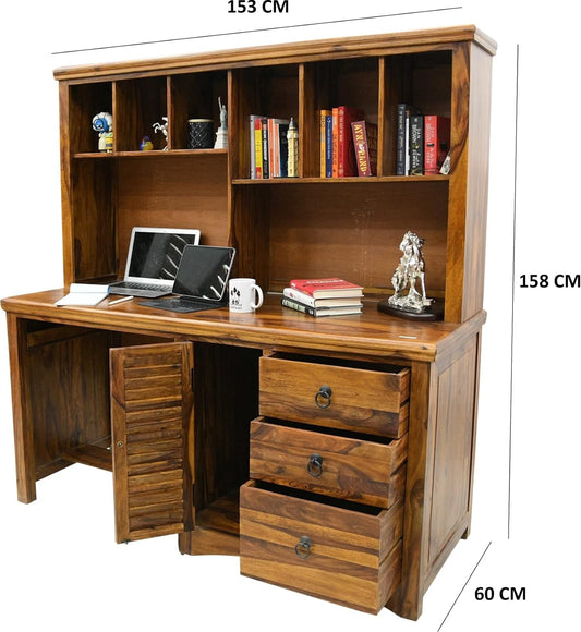 Suryavanshi Solid Sheesham Wood Multi-Purpose Office Study Table/Workstation in Teak Finish(W153, D60, H158 CM)