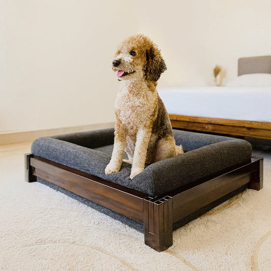 Premium Sheesham Wood Dog Bed with Cushion – Sturdy Wooden Pet Sofa for Medium & Large Dogs, Elegant Handcrafted Design