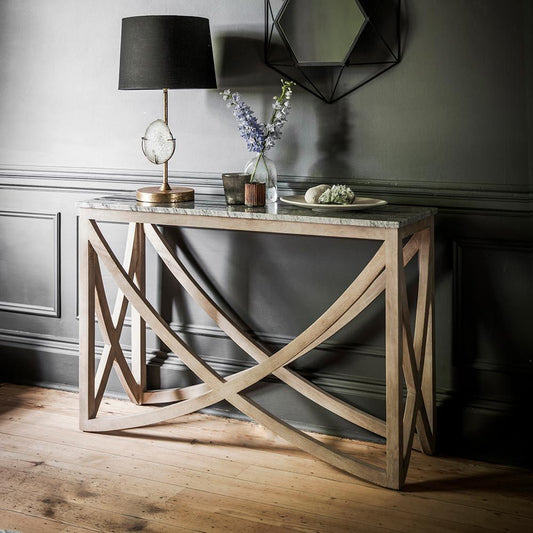 Suryavanshi Sheesham Wood Lily Marble Top Console Table - Elegant and Functional Console Table with Marble top & Wooden Base Console Table