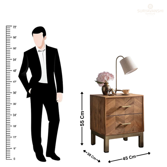 Suryavanshi Premium Solid Mango Wood Bedside Table with Brass Accents – 2 Drawer Nightstand for Bedroom & Living Room