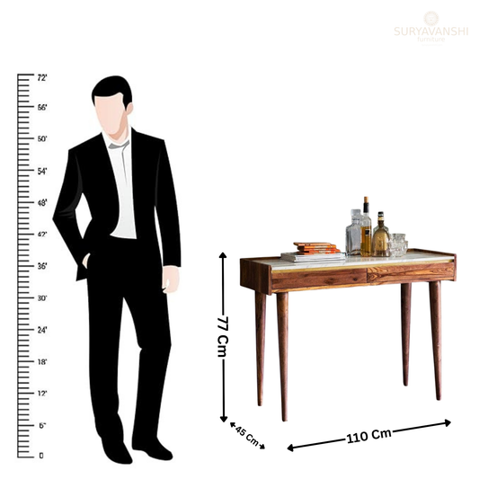 Suryavanshi Furniture Premium Sheesham Wood Console Table with Marble Top – Handcrafted Entryway & Living Room Accent Table