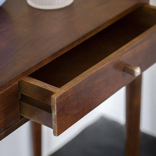 Suryavanshi Mango Wood Quinn Console Table - with Walnut Finish, Brass Handle, 2 Drawers