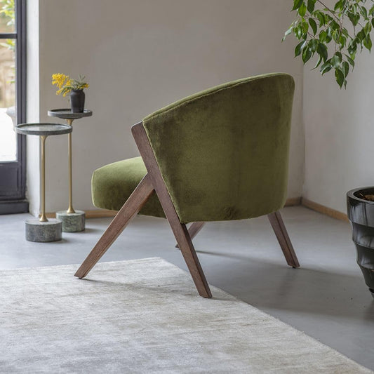 Suryavanshi Mango Wood Scoop Armchair in Velvet - Contemporary Comfort and Style, Upholstered with Cushioned Seating (Deep Green Velvet)