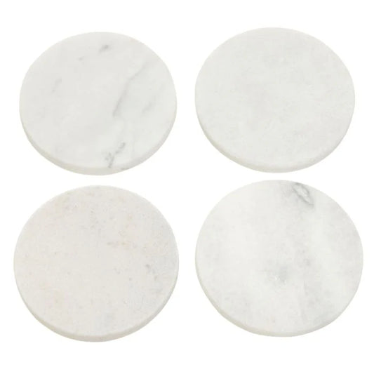 Suryavanshi Round White Marble Coasters | Set of 4 Cosmic Spin ( Measures - H6 x W10 x D10cm)