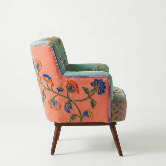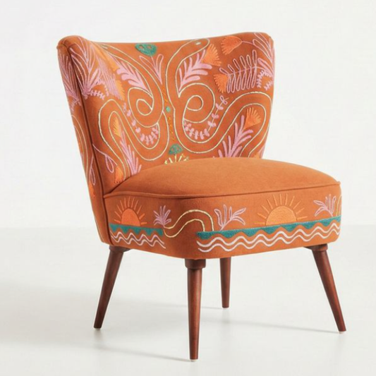 Sitara Embroidered Solid Wood Lounge chair - Burnt Orange