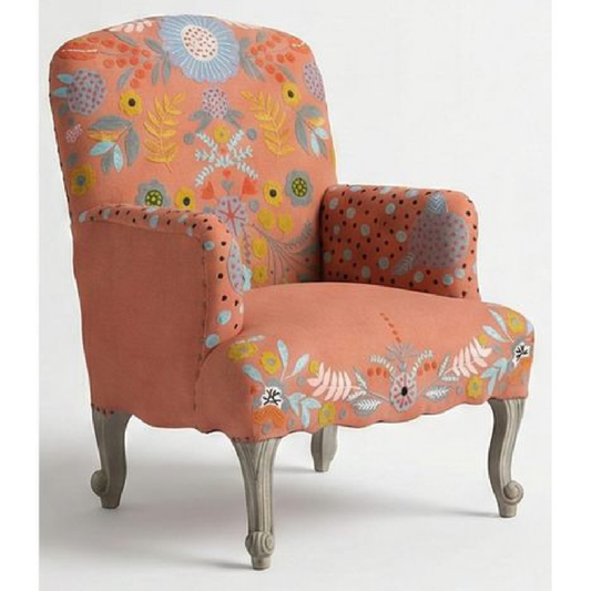 Modella Embroidered Solid Wood Lounge chair - Burnt Orange