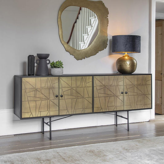 Suryavanshi Iron Metal Crackle Sideboard - Unique Design with Antique Brass Carcass and Stiletto Legs, Spacious Storage (40.5D x 183W x 76.5HCM)