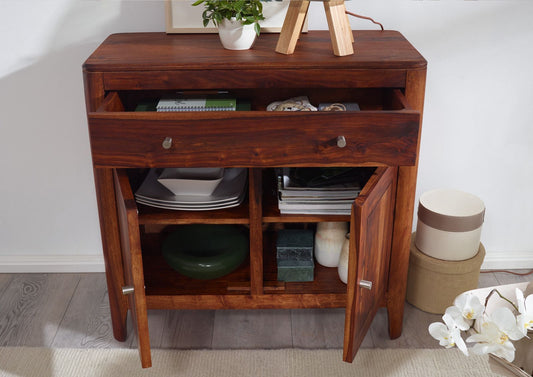 Suryavanshi Sheesham Wood 3 Drawer 1 Door Sideboard – Dark Wood with Natural Finish – Compact and Stylish Storage Furniture (Sheesham Wood, W90 D40 H65 cm)