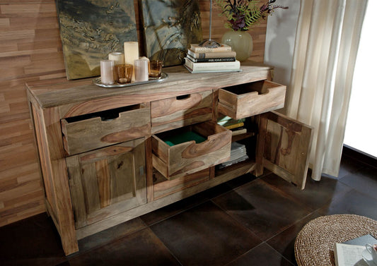 Suryavanshi Sheesham Wood Sideboard with 2 Doors, 5 Drawers and Drawer Tabs – Natural and Elegant Furniture for Your Dining Room (Sheesham Wood, W140 D42 H80 cm)