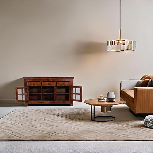 Suryavanshi Sheesham Wood Sideboard Cabinet for Living Room, Drawing Room, Office & Lounge Storage Type: 3 Doors and 3 Drawers, Wooden Storage Cabinet, 45D x 135W x 76H Cm