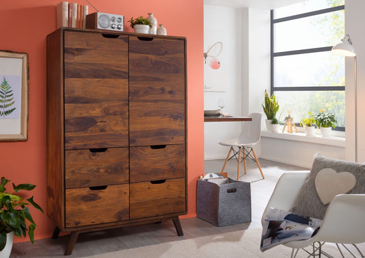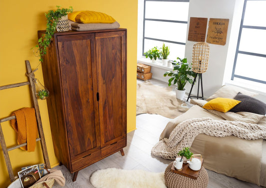 Suryavanshi Title Sheesham Wood Wardrobe - 2 Door, 2 Drawer, 6 Shelf Wardrobe with One Hanging Shelf and Wooden Rod - Spacious and Elegant Bedroom Furniture (Sheesham Wood, W90 D45 H180 cm)