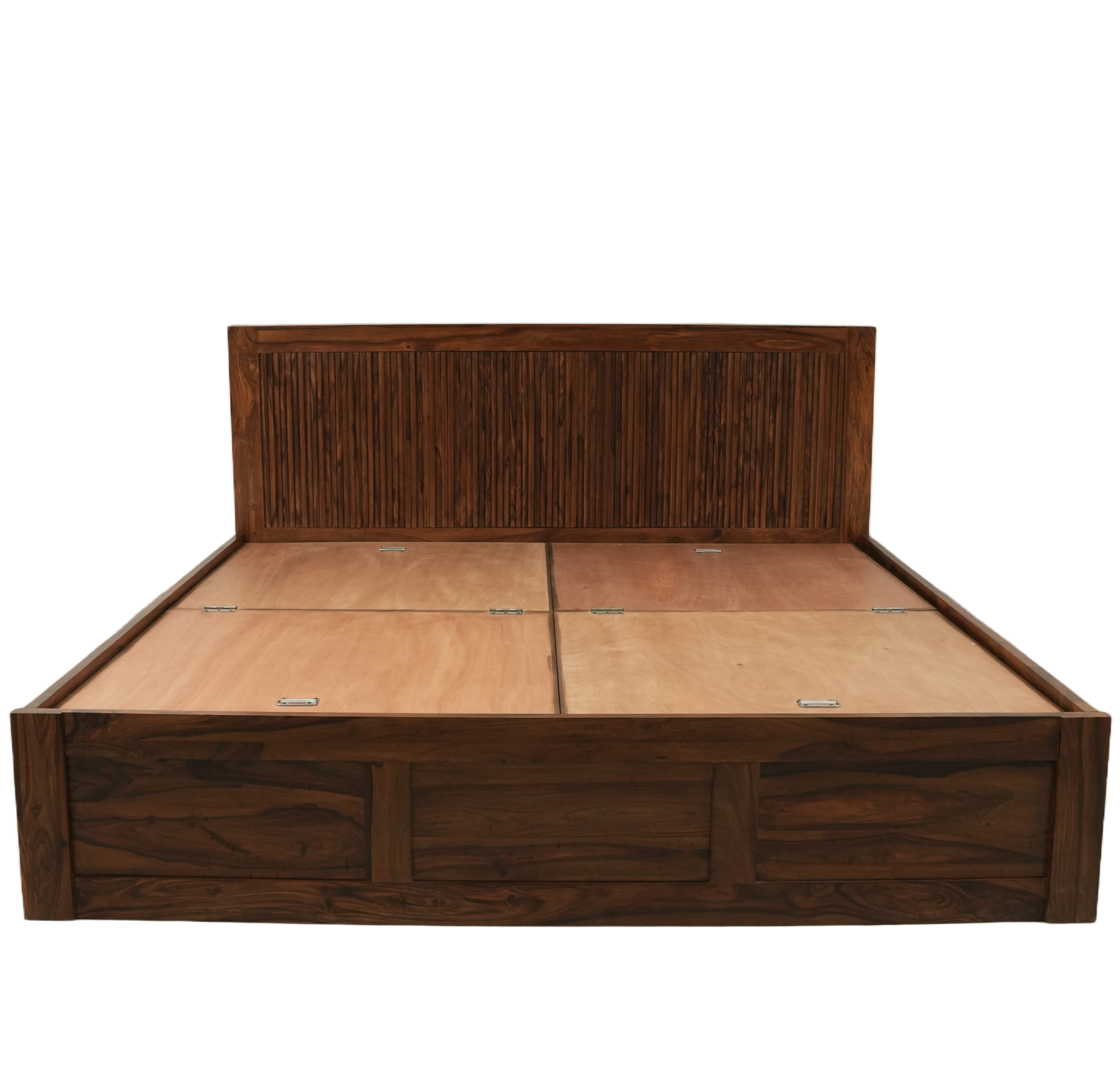 Modern Reed Solid Sheesham Wood Bed with Storage & Slatted Headboard