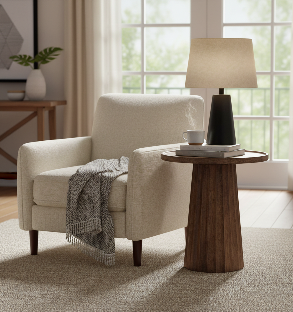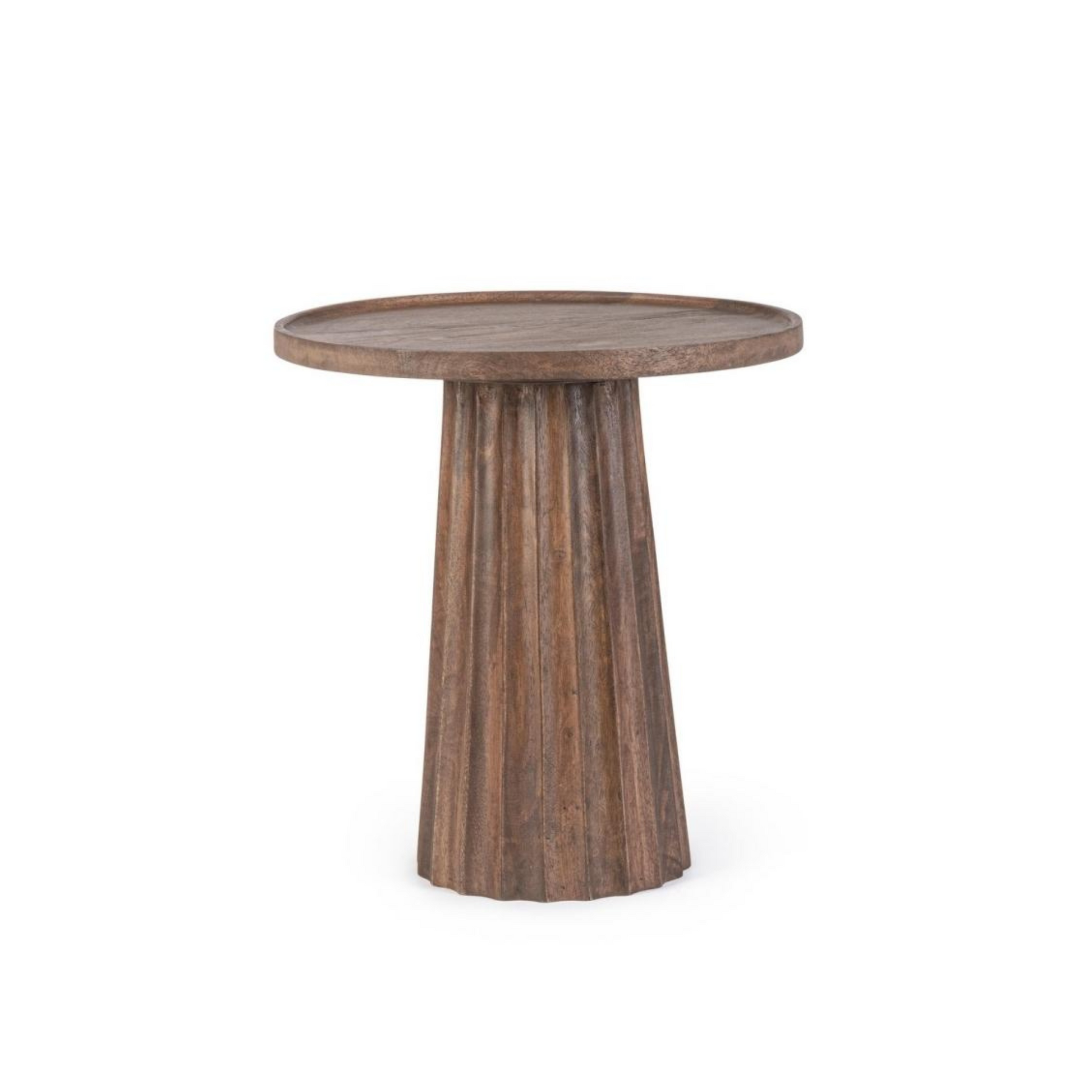 ORACLE RD Mango Wood Side Table – Flat Walnut Finish | Modern Round End Table for Living Room
