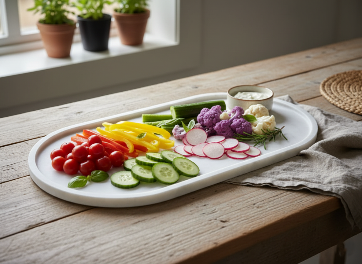 Premium Vegetable Serving Platter with Fresh Veggies & Dip Bowl – Elegant Appetizer Tray