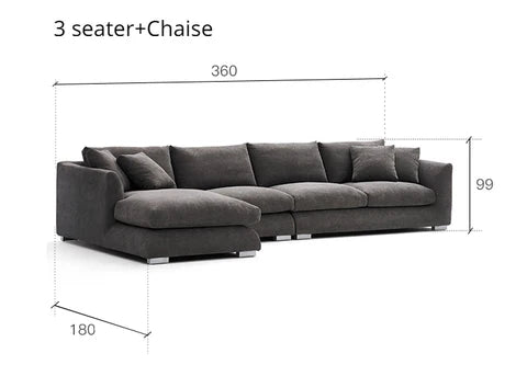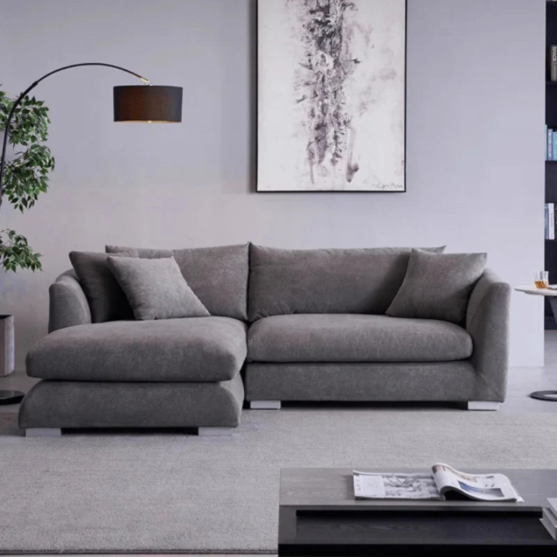 Luxe Cloud Sectional L-Shaped Sofa – Plush Grey Fabric with Left Chaise & Deep Seating Comfort