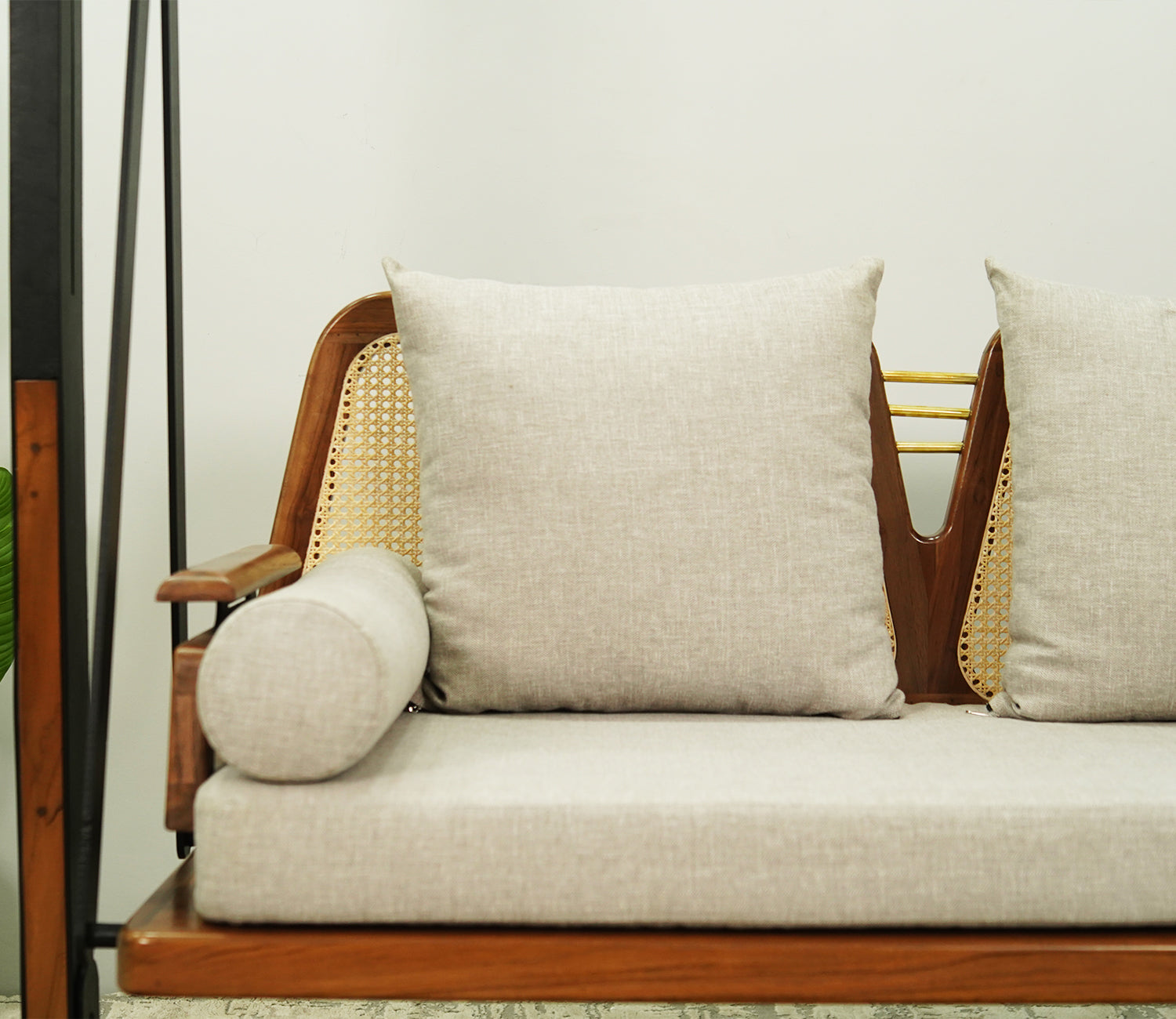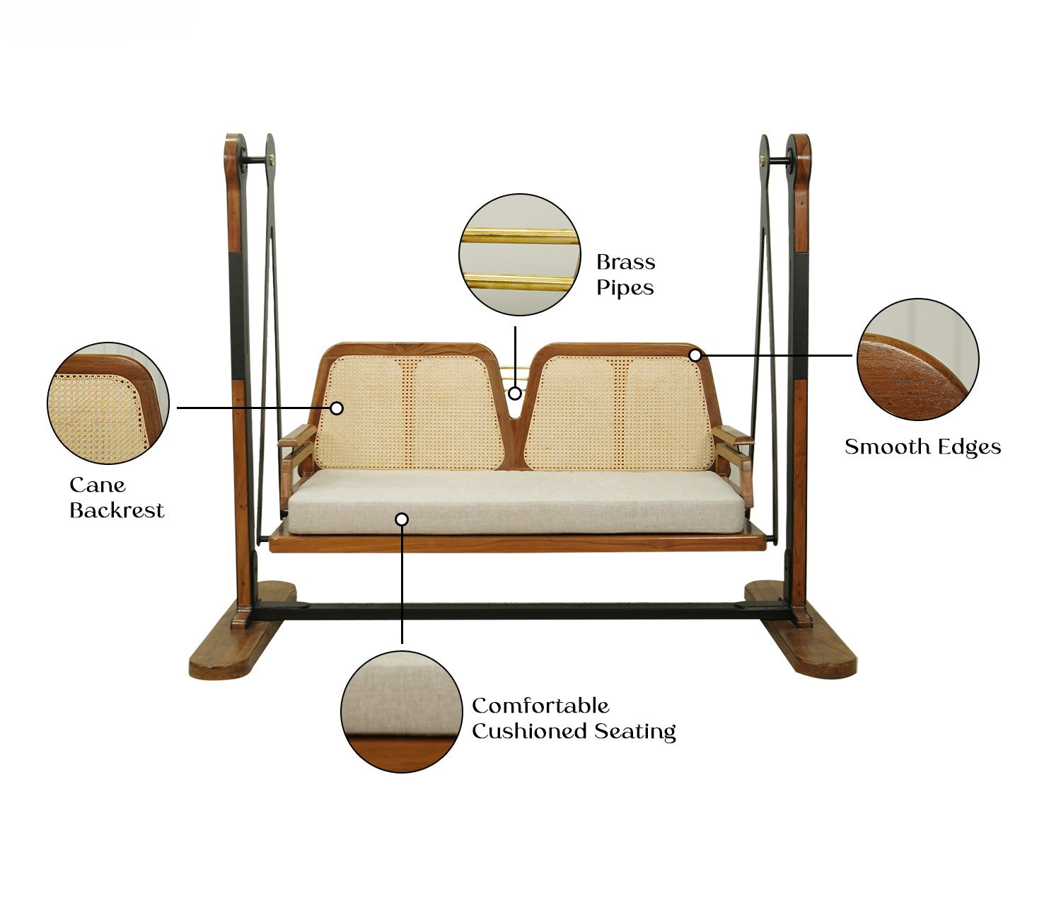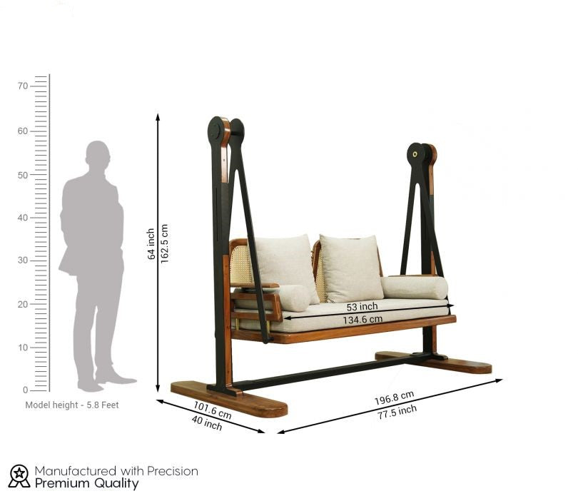 Suryavanshi 2 Seater Sheesham Wood Cane Swing Chair (Sand Grey)