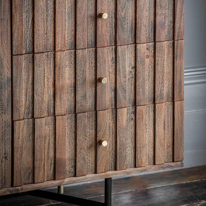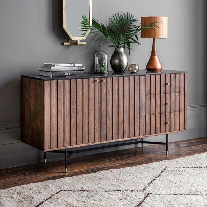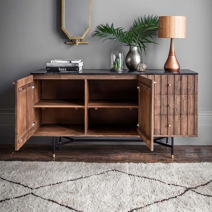 Suryavanshi Acacia Wood Berkeley Marble Sideboard – Modern Elegance with Brass Accents (W150 x D45 x H78cm)