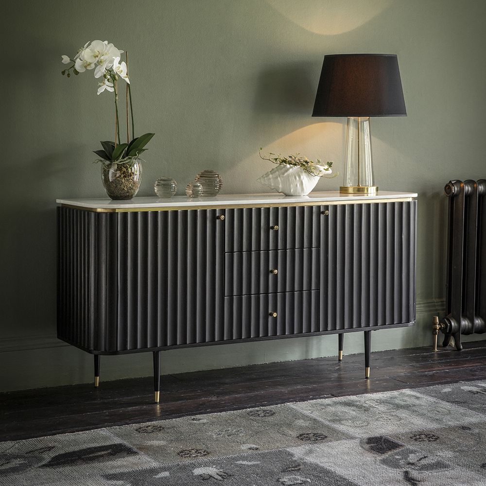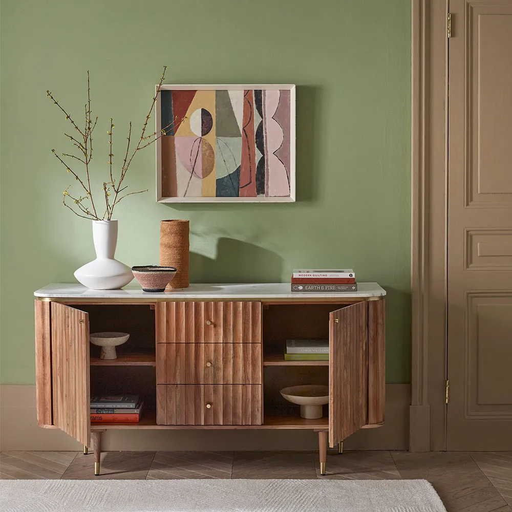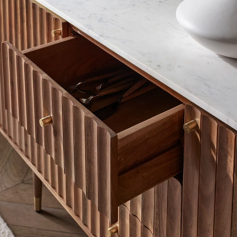 Suryavanshi Acacia Wood Flute Design Sideboard – A Symphony of Elegance and Storage (45D x 147W x 76H CM)