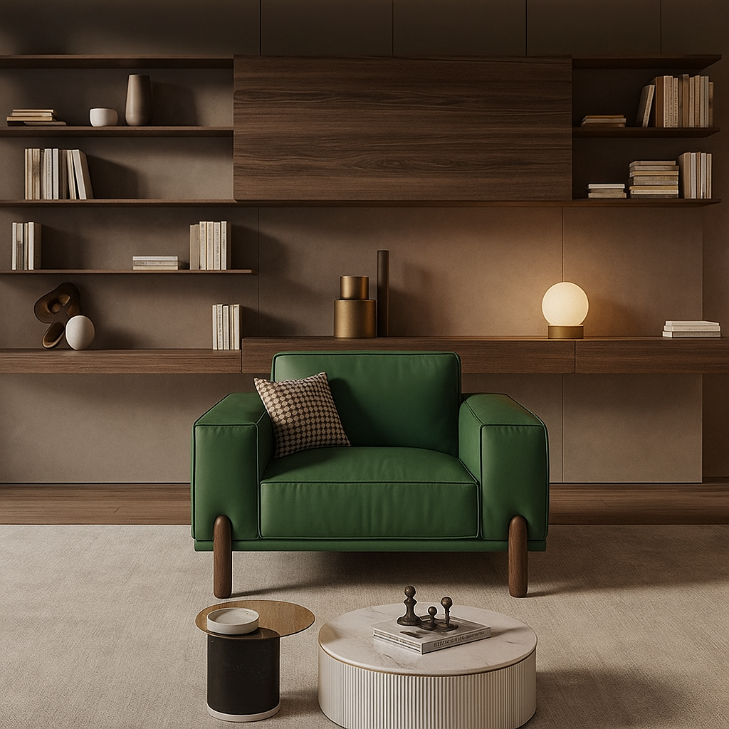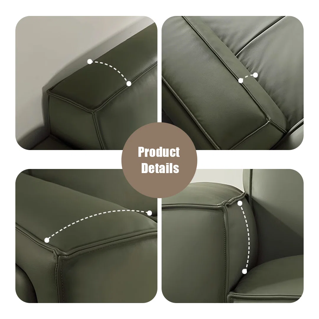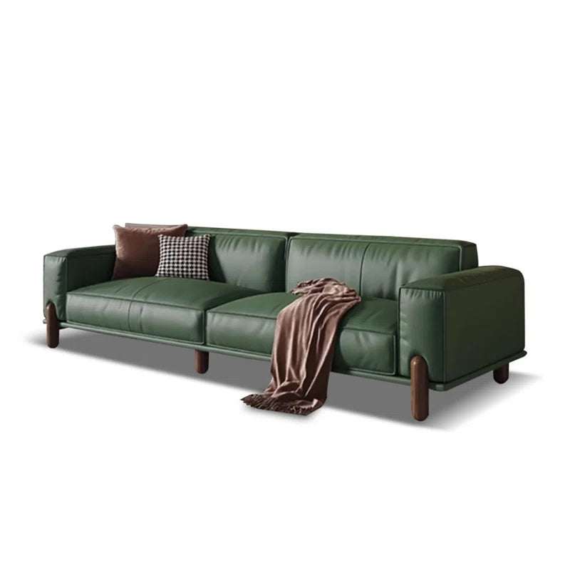 Emerald Luxe Pu Leather Olive Green Sofa – Modern Couch with Solid Wood