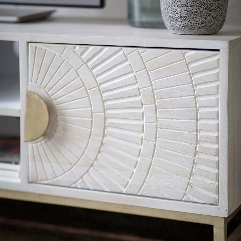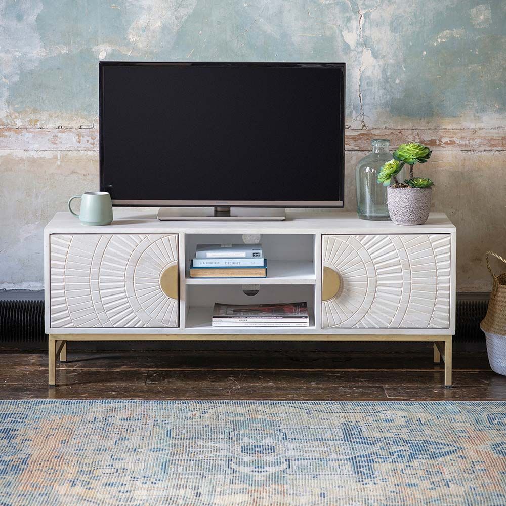 Suryavanshi Mango Wood Floor Standing TV Entertainment Unit Set Top Box Stand/TV Cabinet with Shelves for Books & Décor Display Unit, Upto 75 Inches (White) (White)