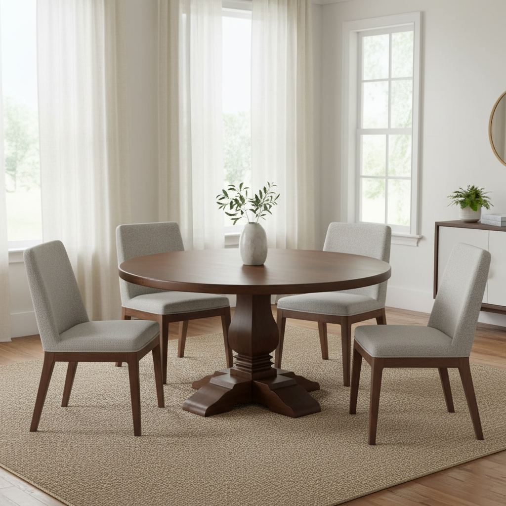 Suryavanshi Mango Wood Round Dining Table with French Legs - 4 & 6 Seater Options Available (Table Only)