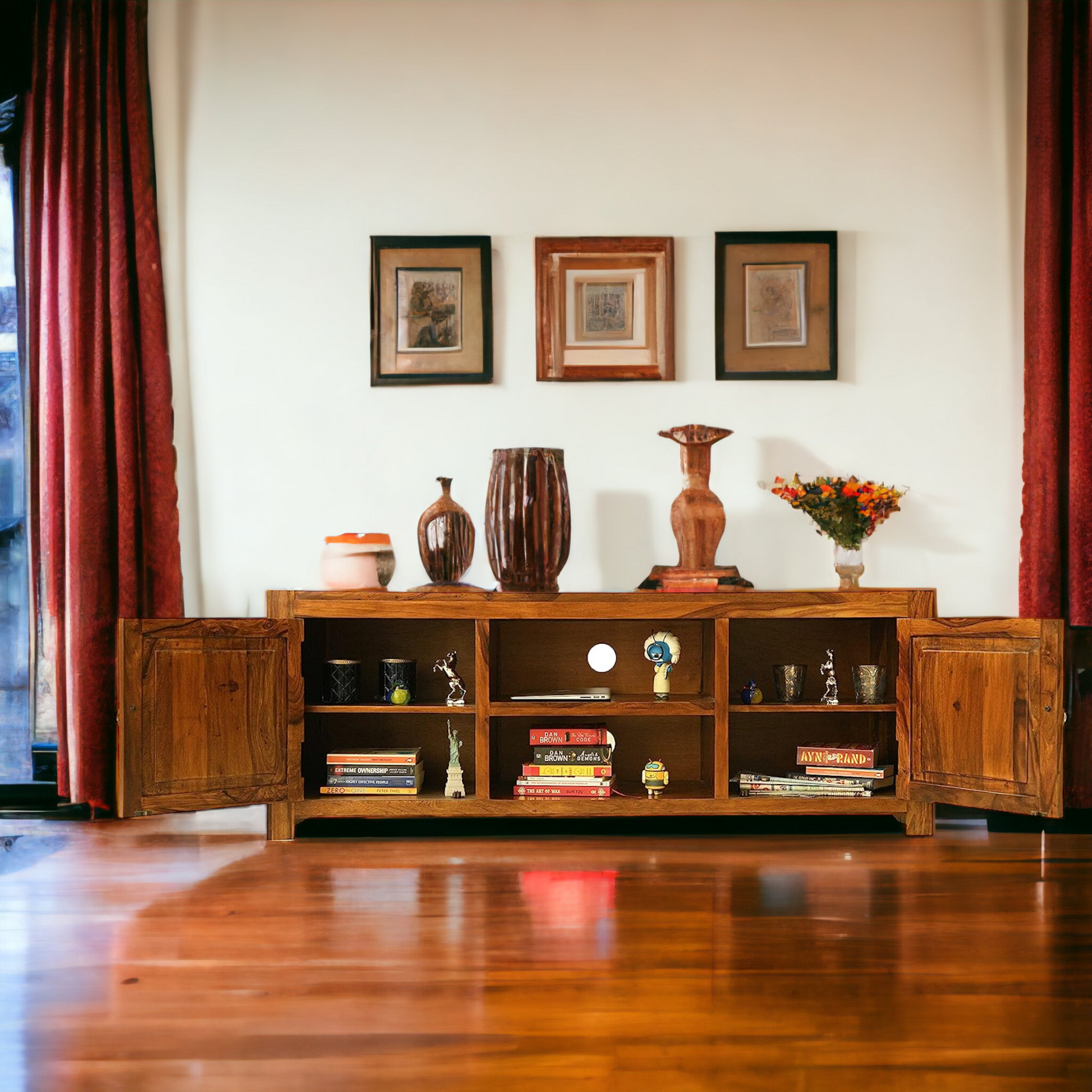 Suryavanshi Mango Wooden TV Cabinet with 2 Open Shelves & 2 Doors for Home TV Entertainment Unit Upto 55 Inches, Wooden Storage Cabinet, tv Unit, 40D x 147W x 55H Cm