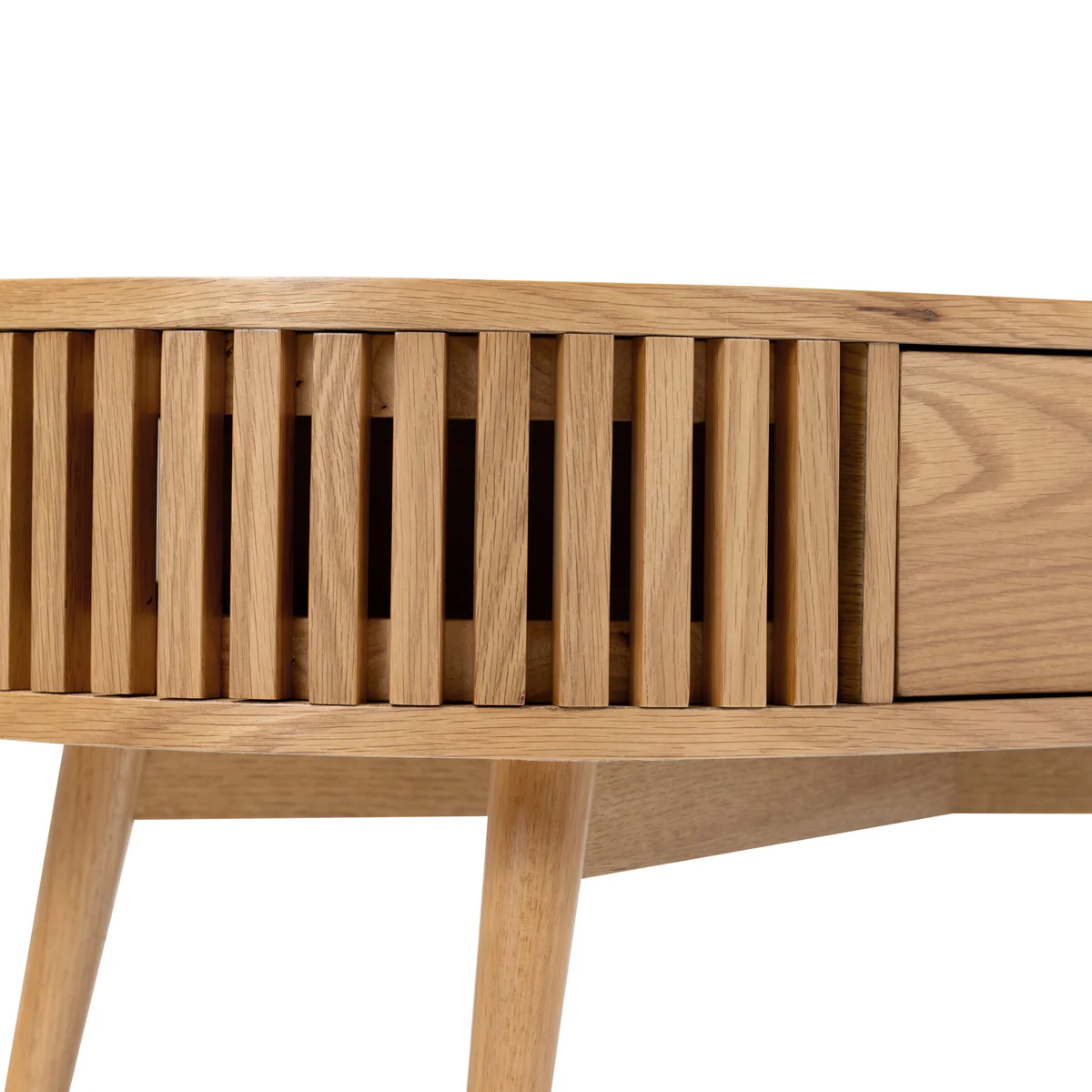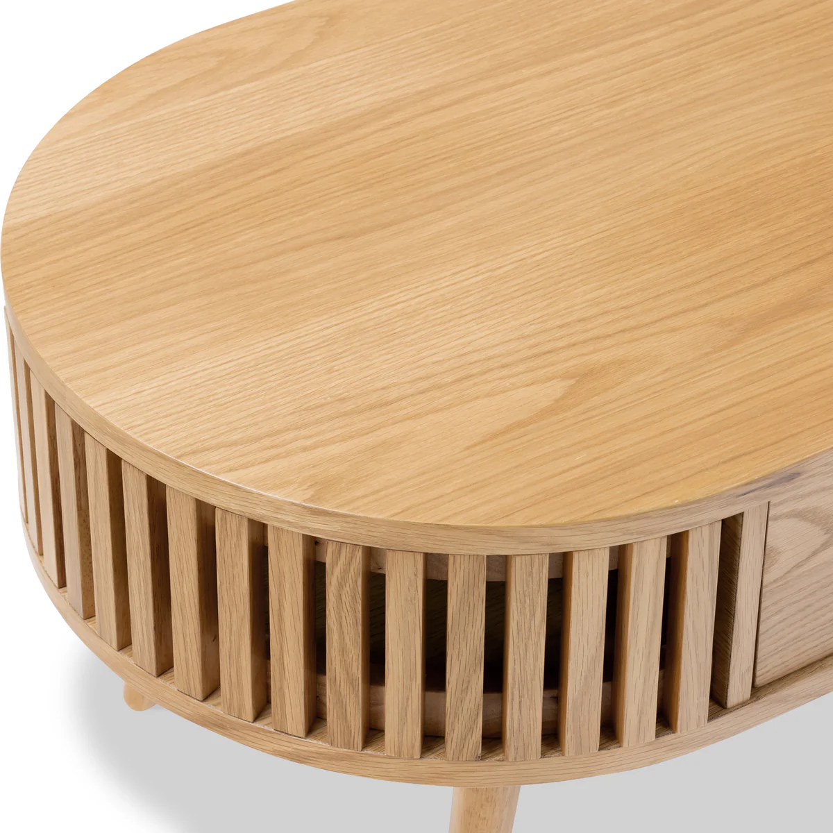 Suryavanshi Mid-Century Modern Oval Coffee Table with Storage Drawer, Natural Mango Wood, Slatted Design | Stylish Living Room Centerpiece