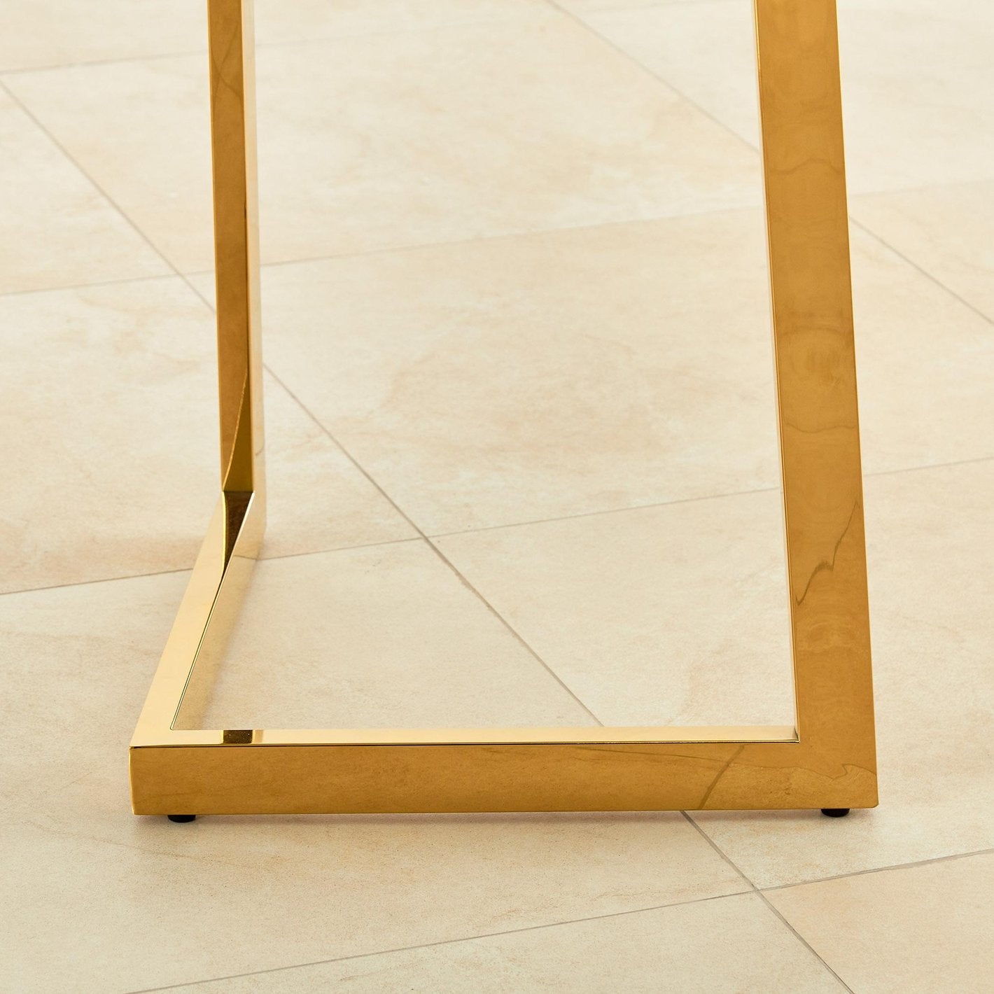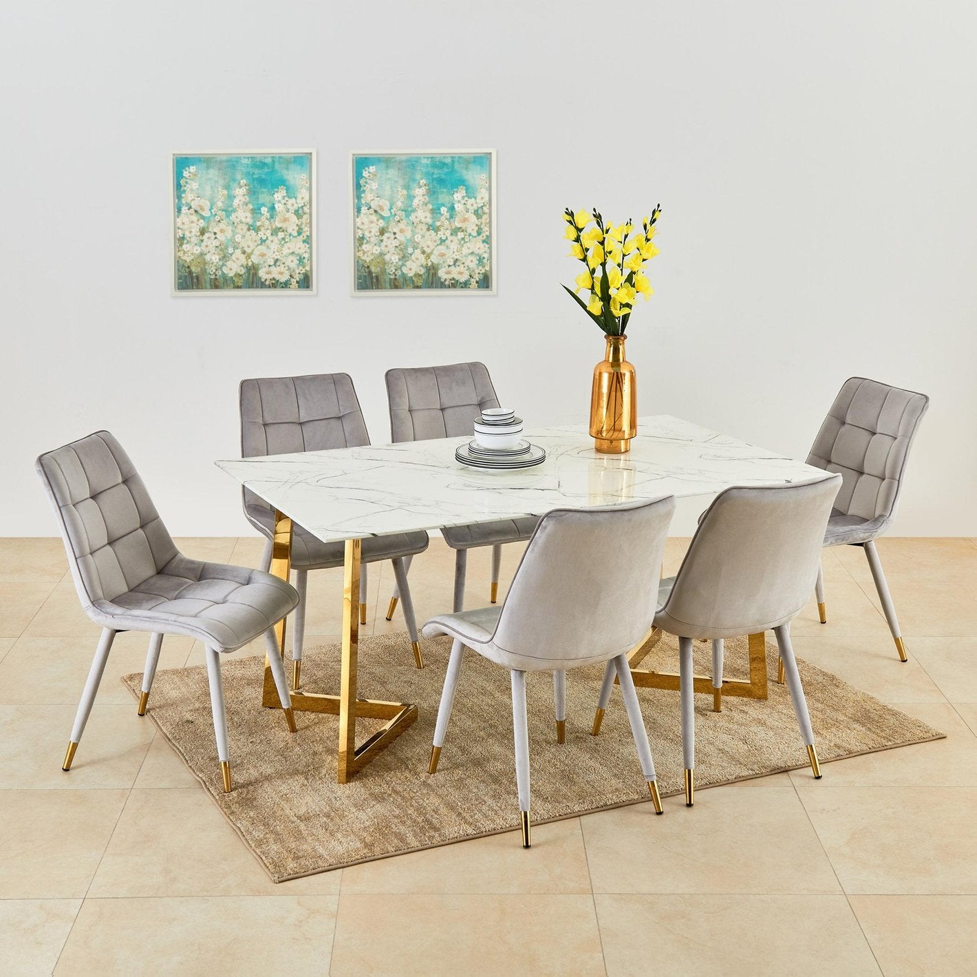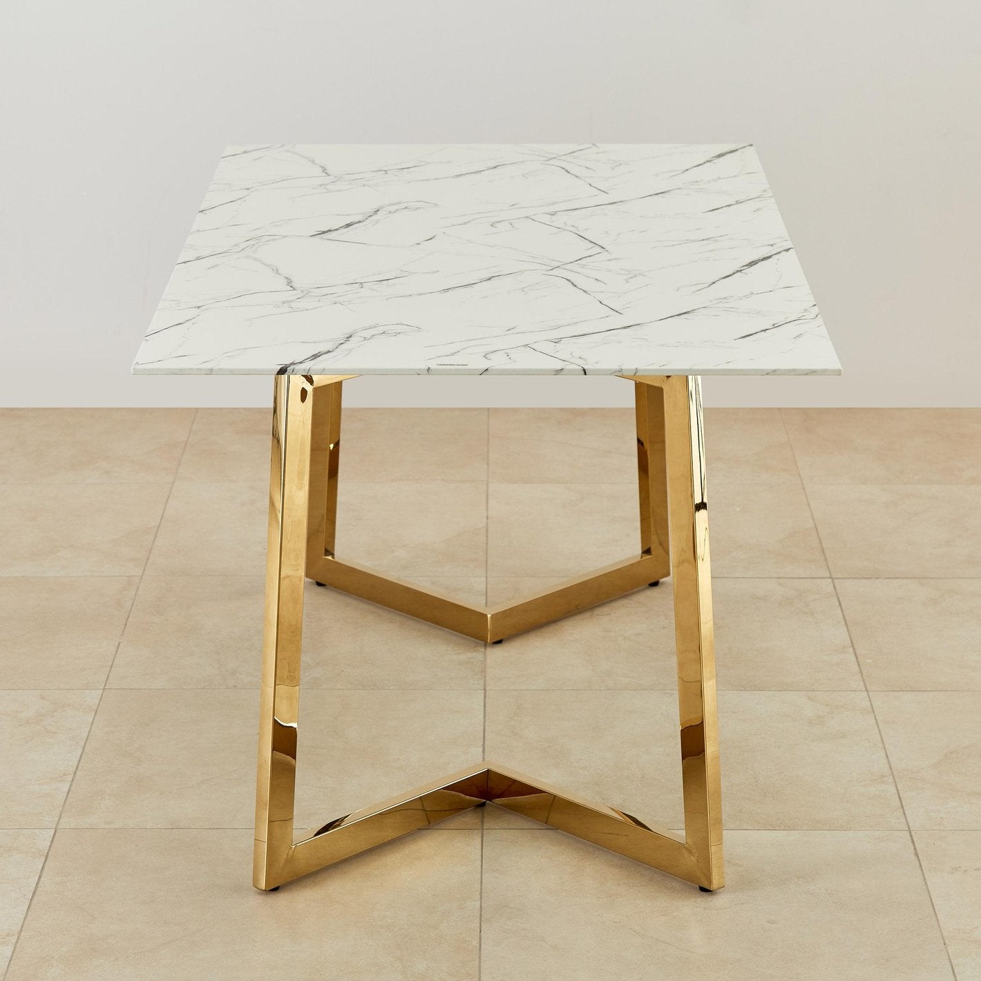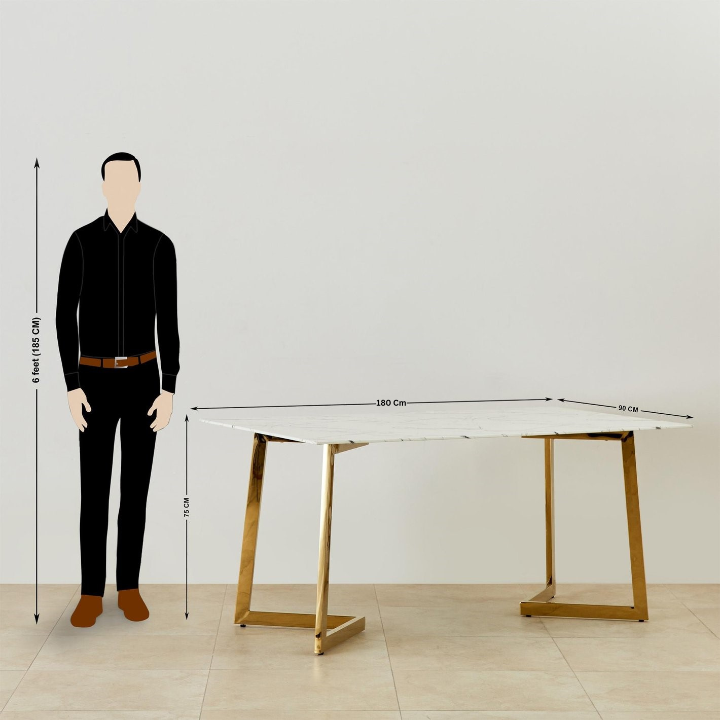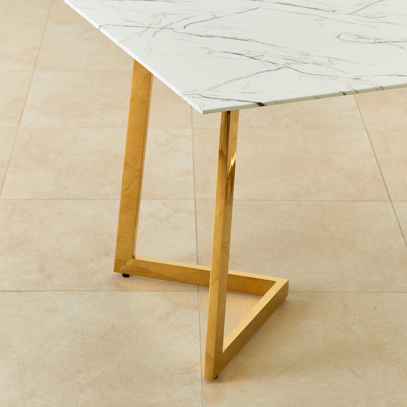 Suryavanshi Modern Marble Dining Table – Rectangular White Top with Gold Metal Legs, Elegant Kitchen & Dining Room Table, Contemporary Furniture for Home or Office, Space-Saving Design