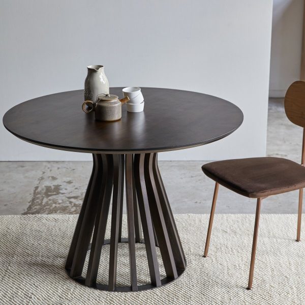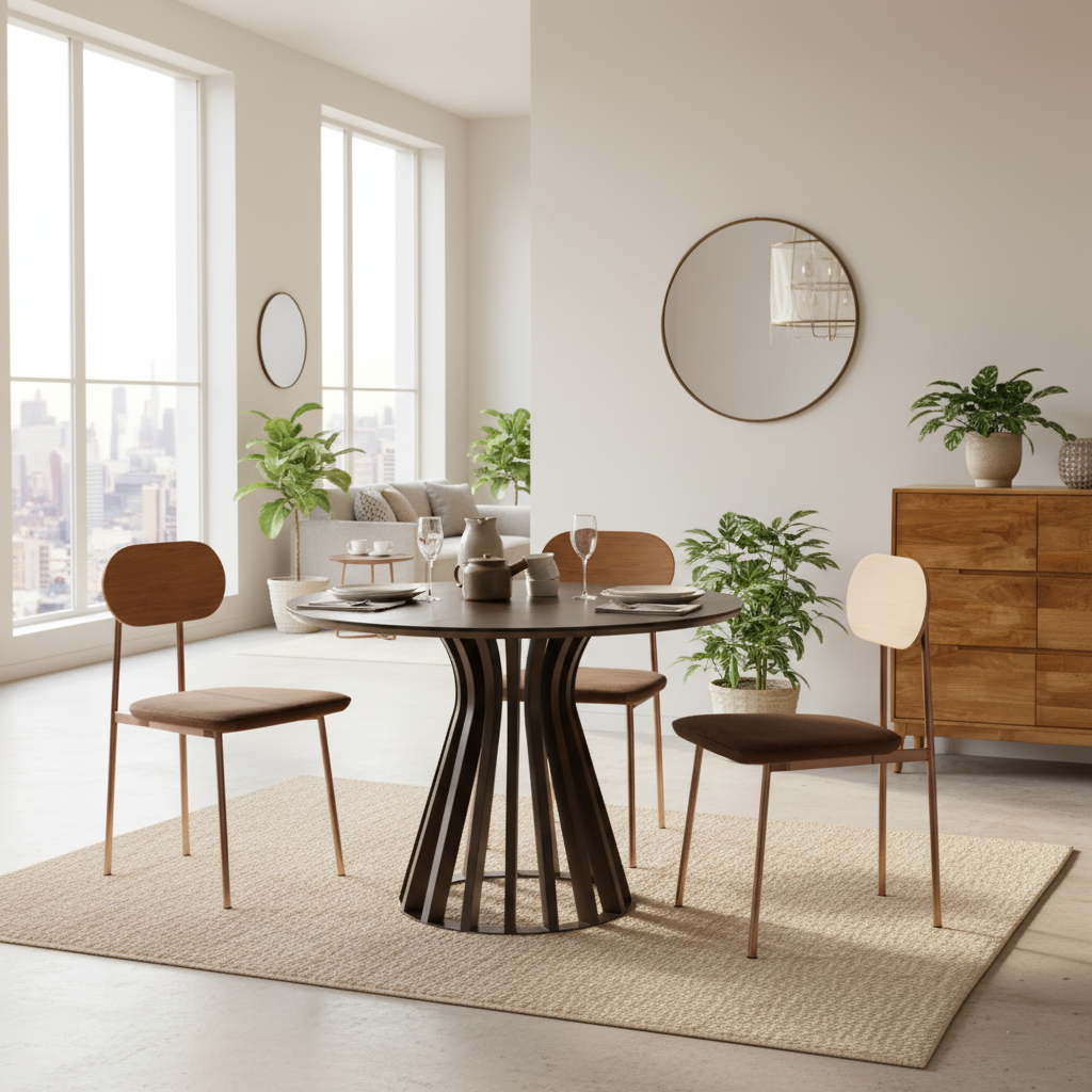Suryavanshi Round Dining Table – Mango Wood Top, Iron Base – 4-Seater (Round, W110 D110 H76 cm)