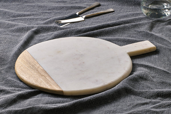 Suryavanshi Round Marble Serving Board White Crimson Surge - White (2 x 41 x 32cm)