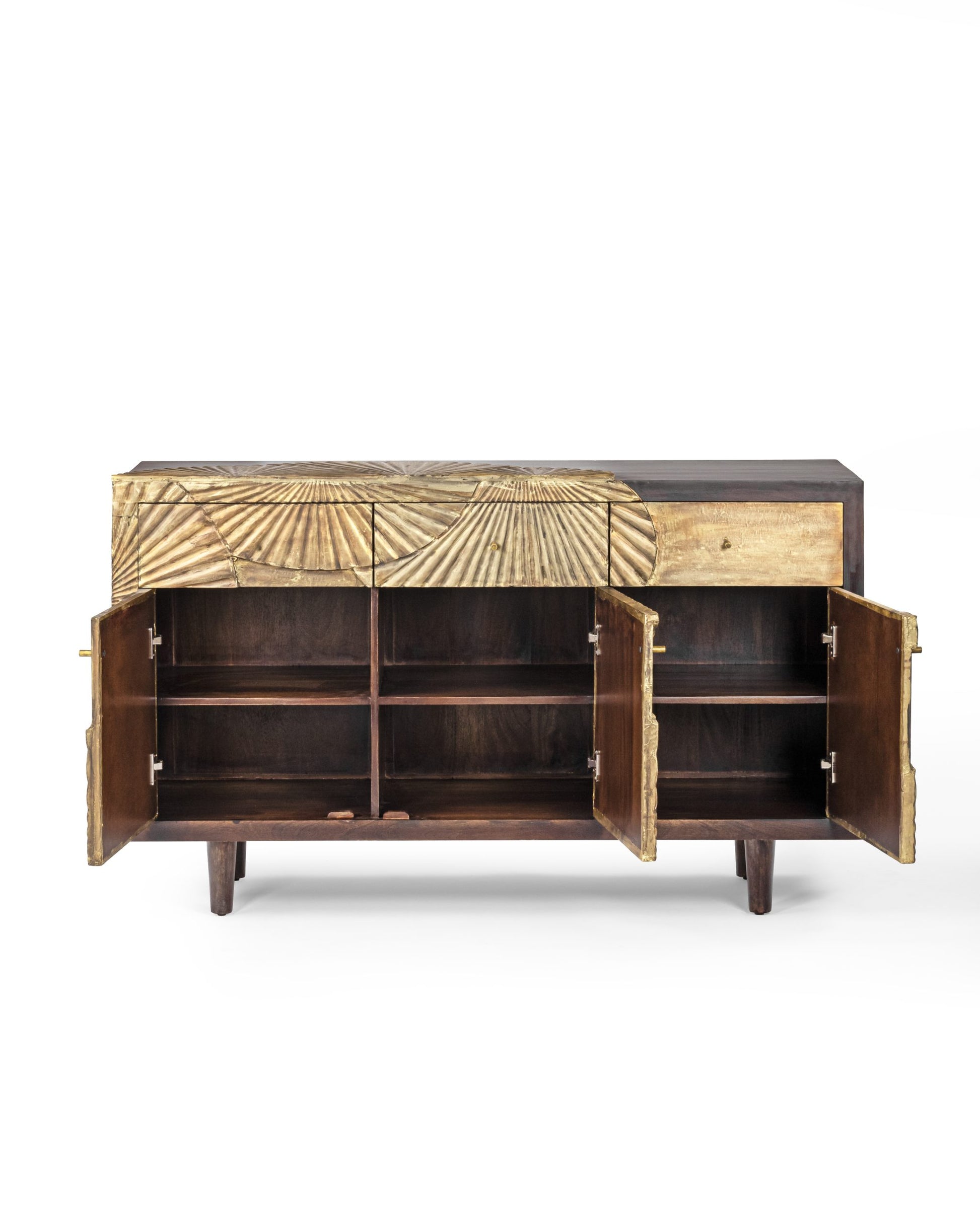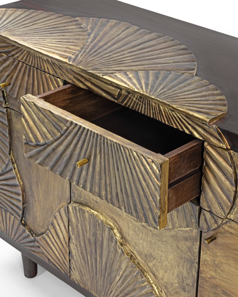 Suryavanshi Sheesham Wood Aegis Sideboard with Brass Work and Antique Finish – 3 Doors, 3 Drawers (W122 D45.7 H83.7 cm)