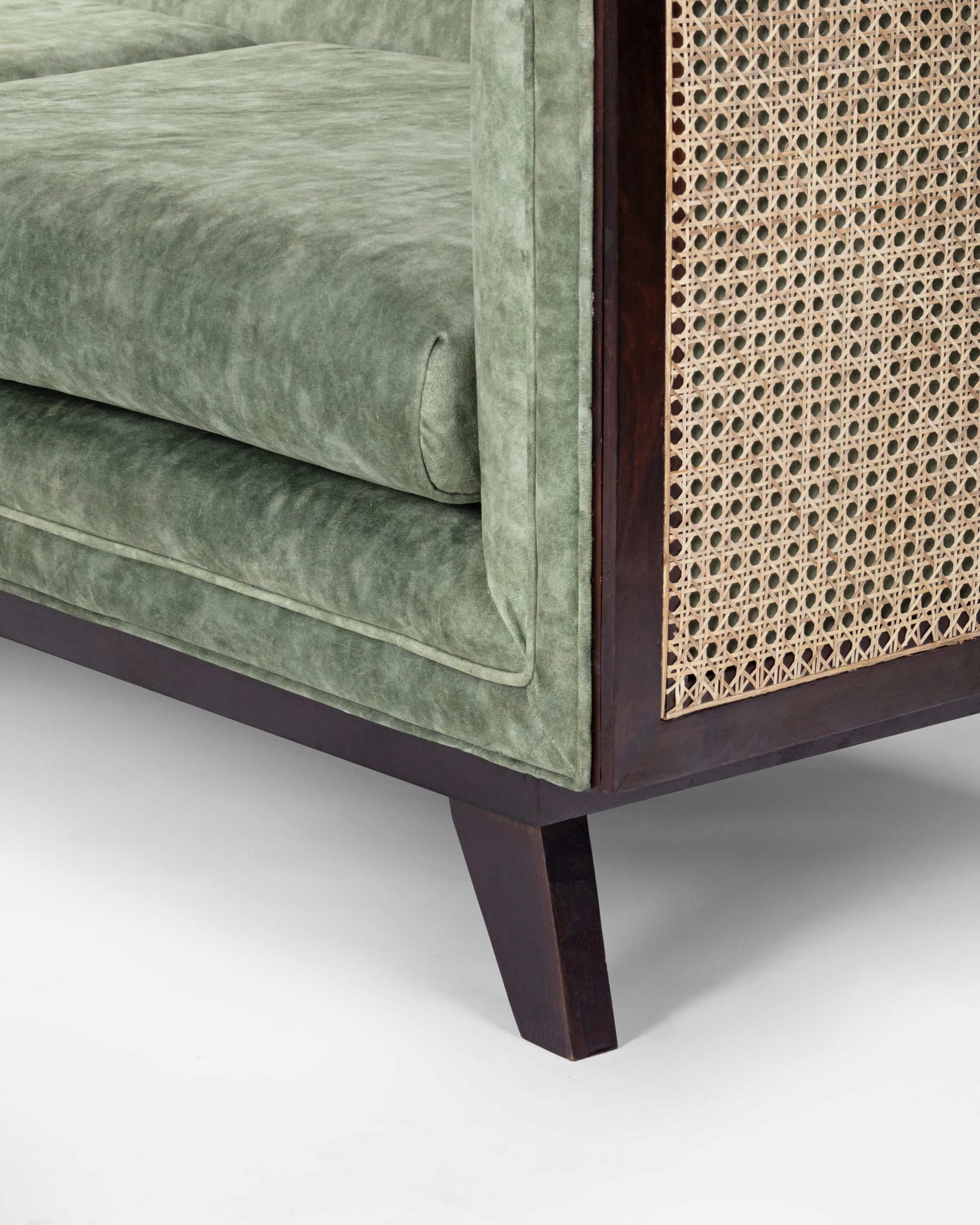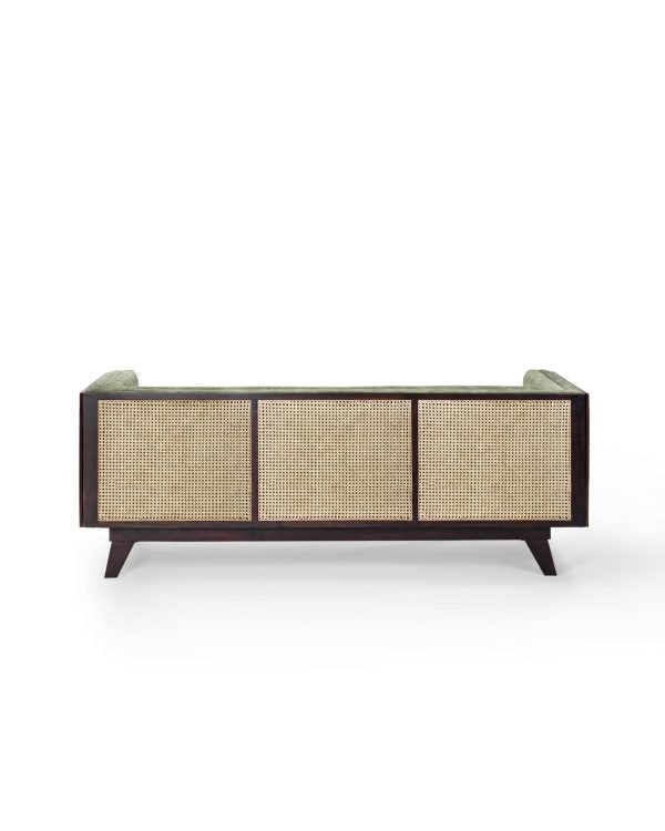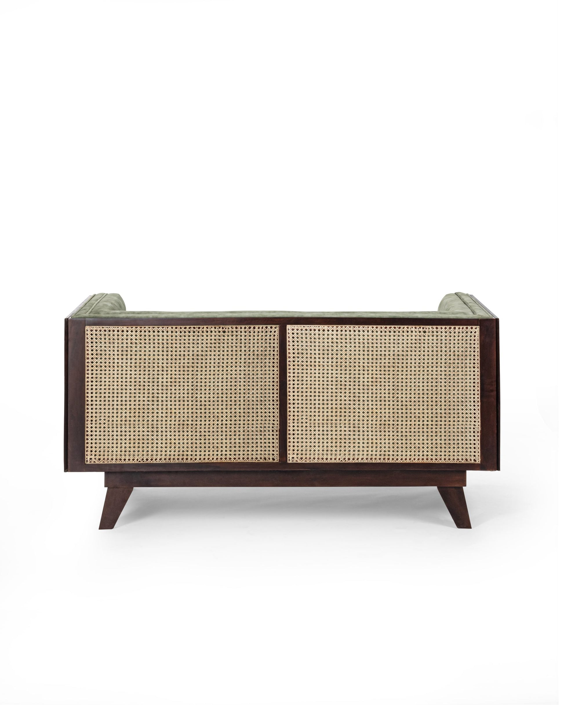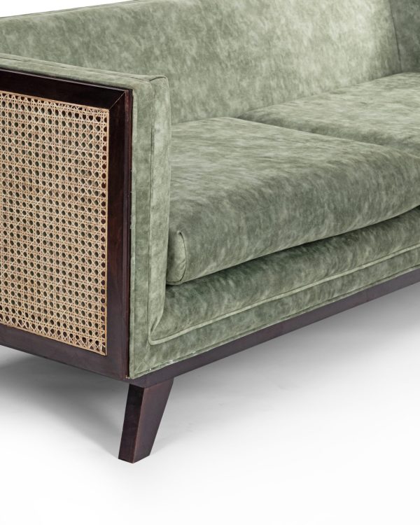 Suryavanshi Sheesham Wood Cane Work Sofa – Velvet Upholstery – Woven Elegance – Timeless Style and Comfort