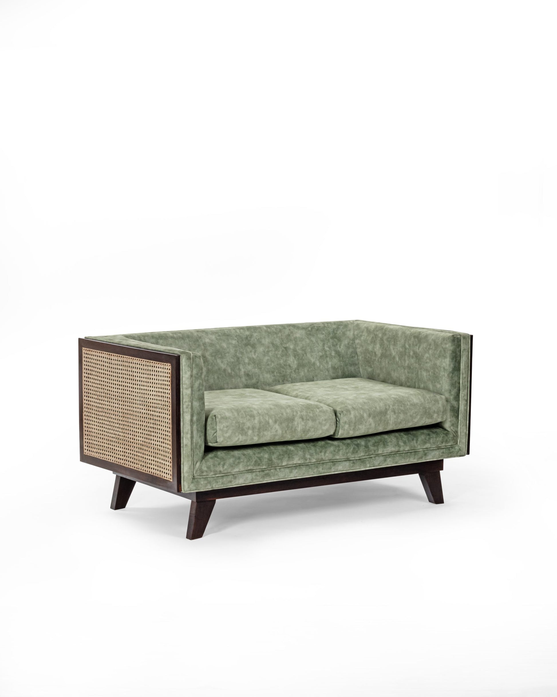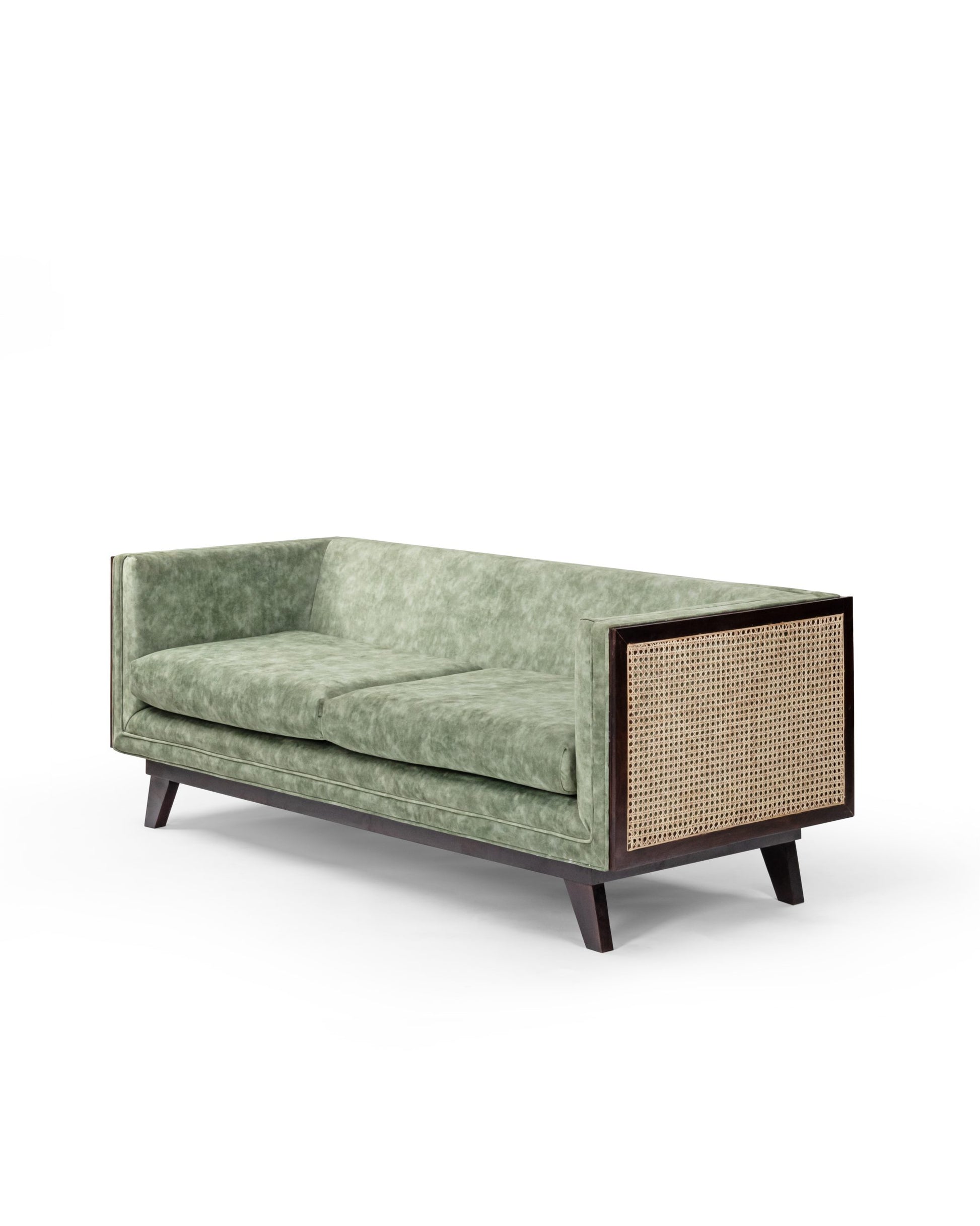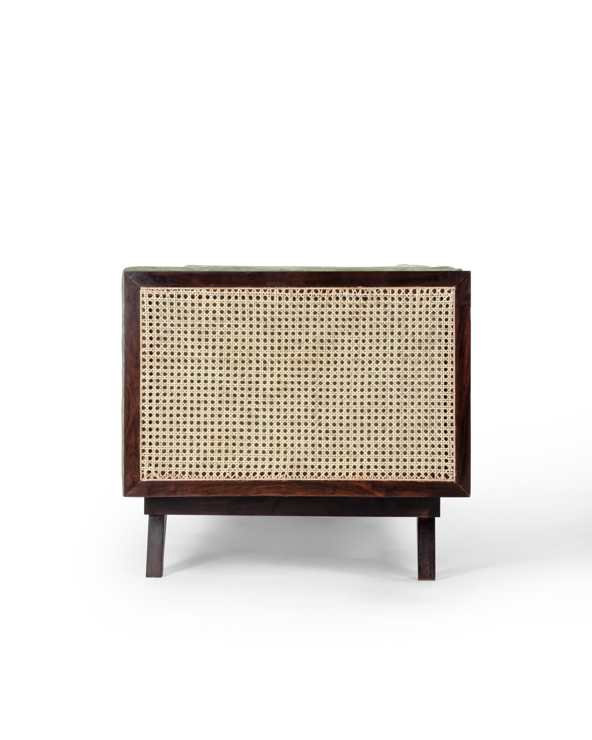 Suryavanshi Sheesham Wood Cane Work Sofa – Velvet Upholstery – Woven Elegance – Timeless Style and Comfort