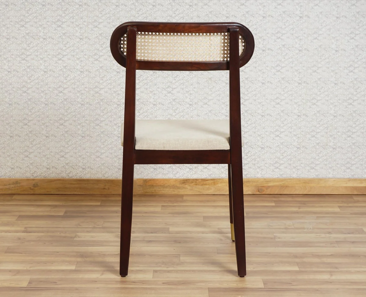Regal Weave Sheesham Wood Dining Chair Set of 2 with Cane Backrest & Upholstered Seat