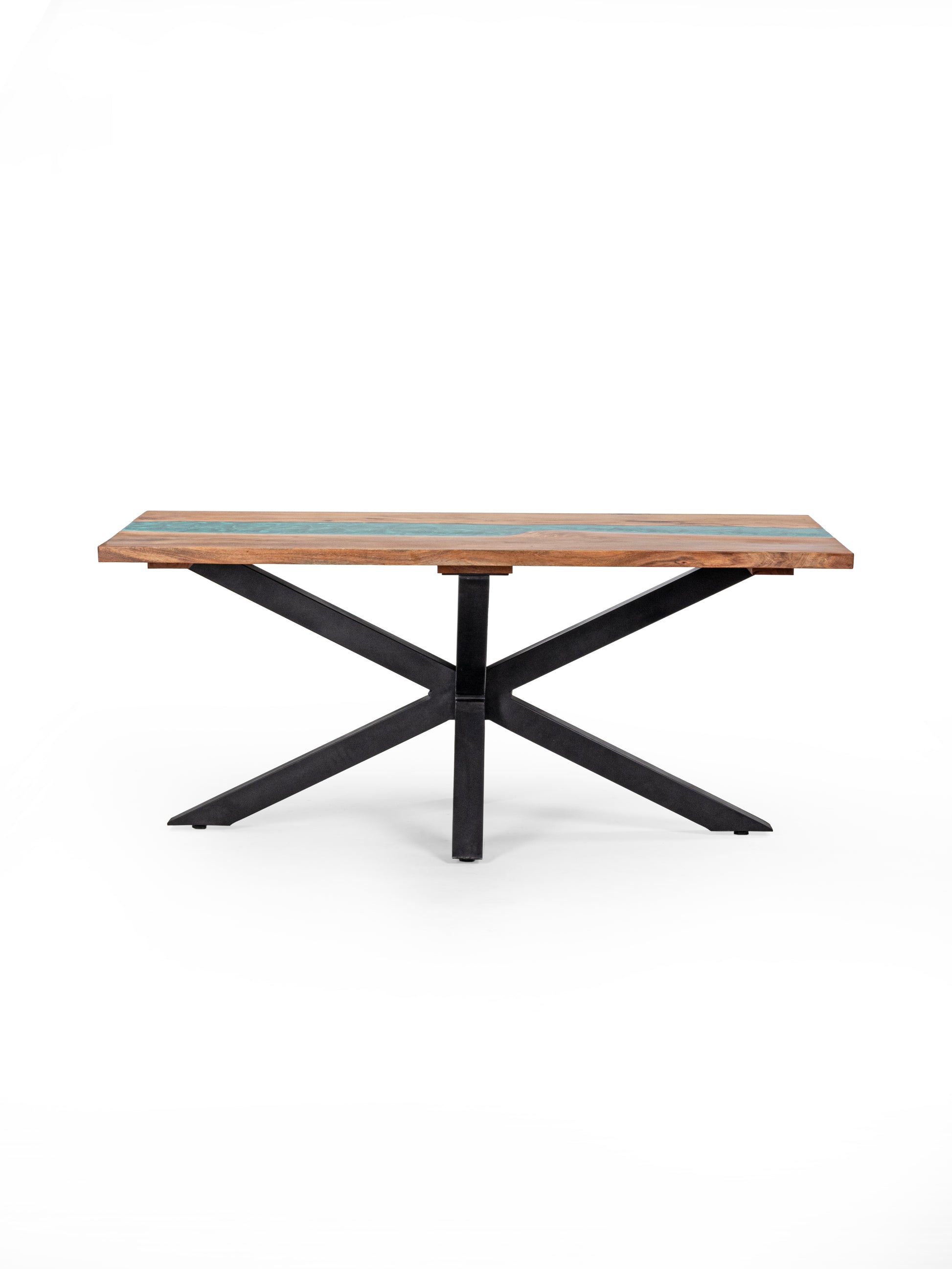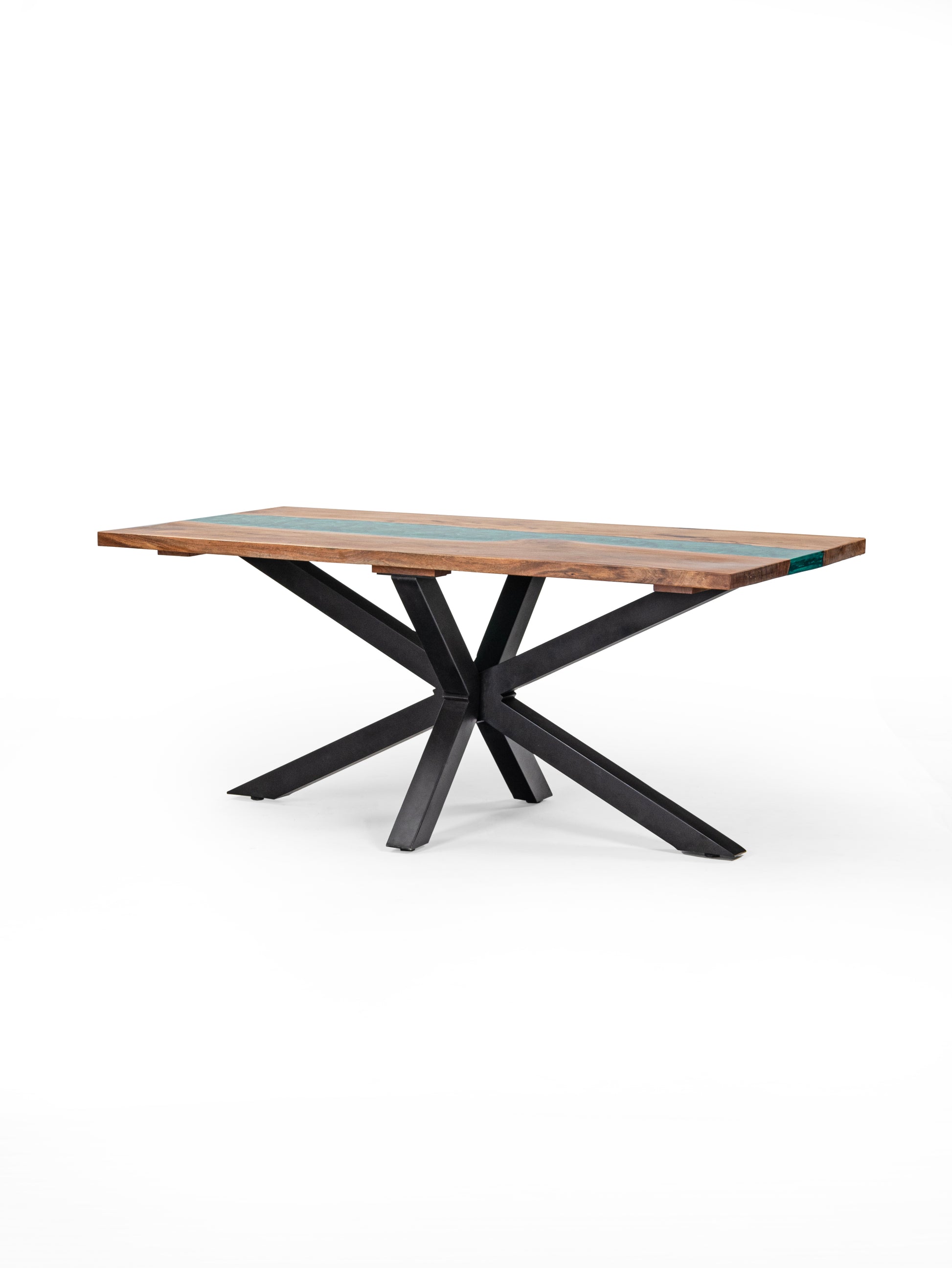 Suryavanshi Sheesham Wood Dining Table - Chic 6-Seater with Epoxy Top - X-Cross Iron Legs - Stylish and Durable (Rustic, W180 D90 H76 CM 6-Seater)