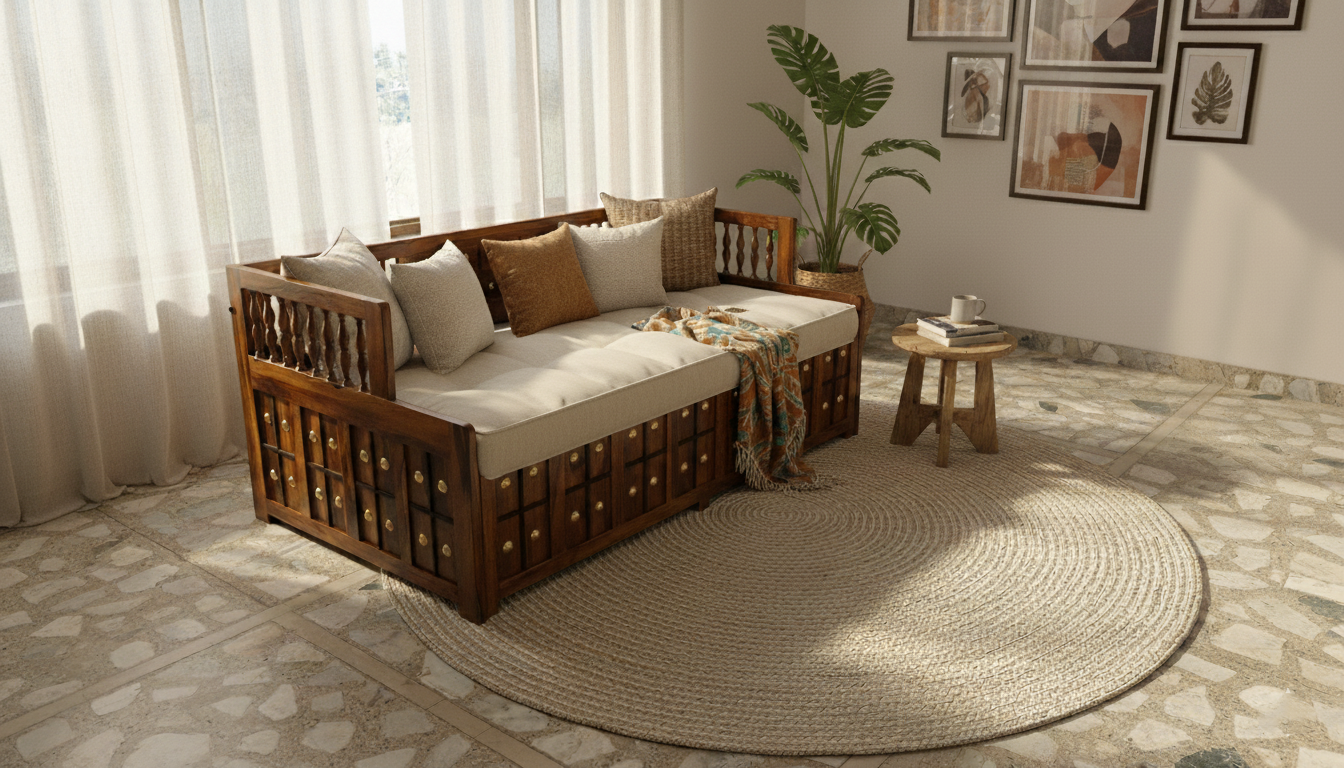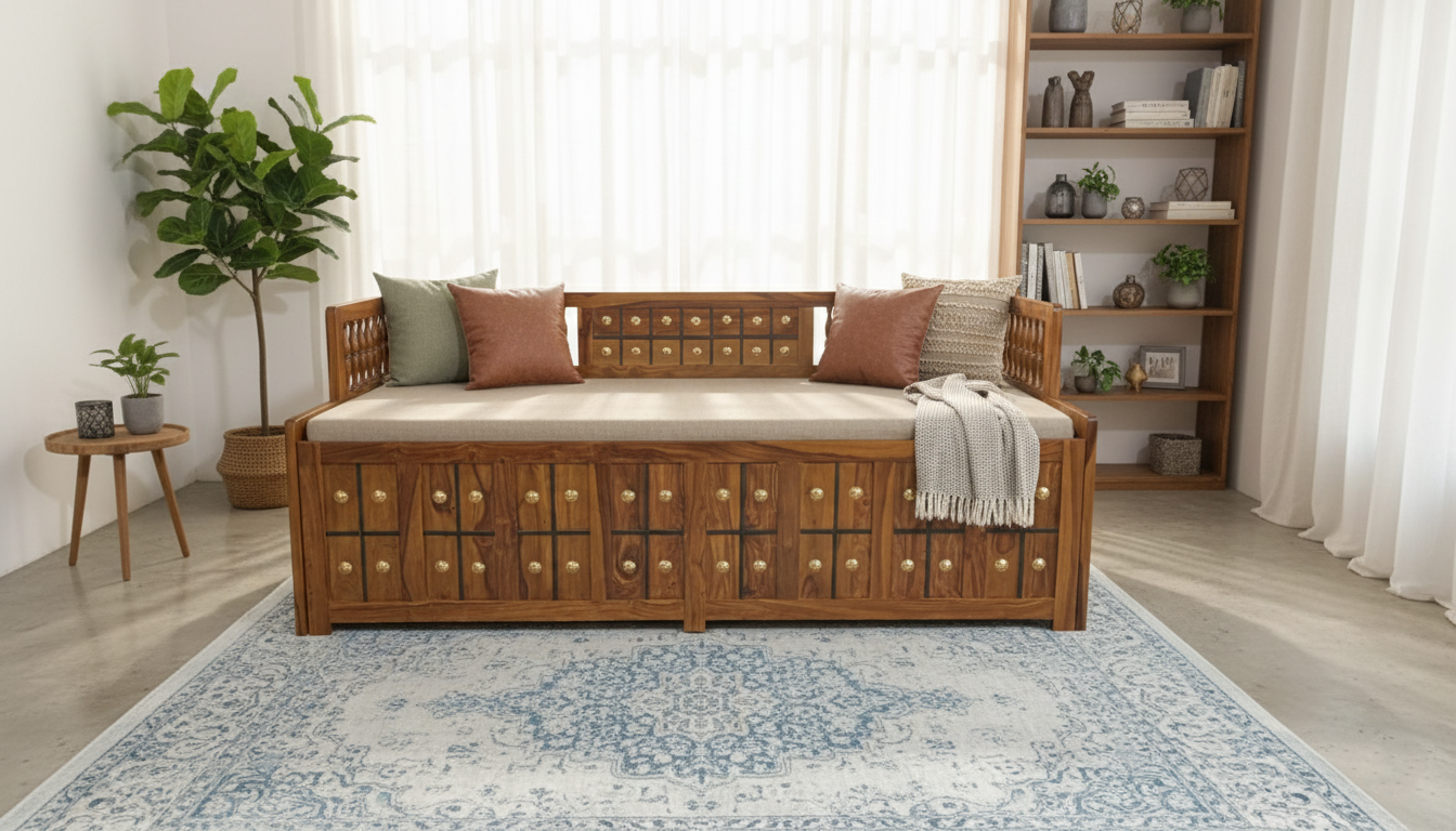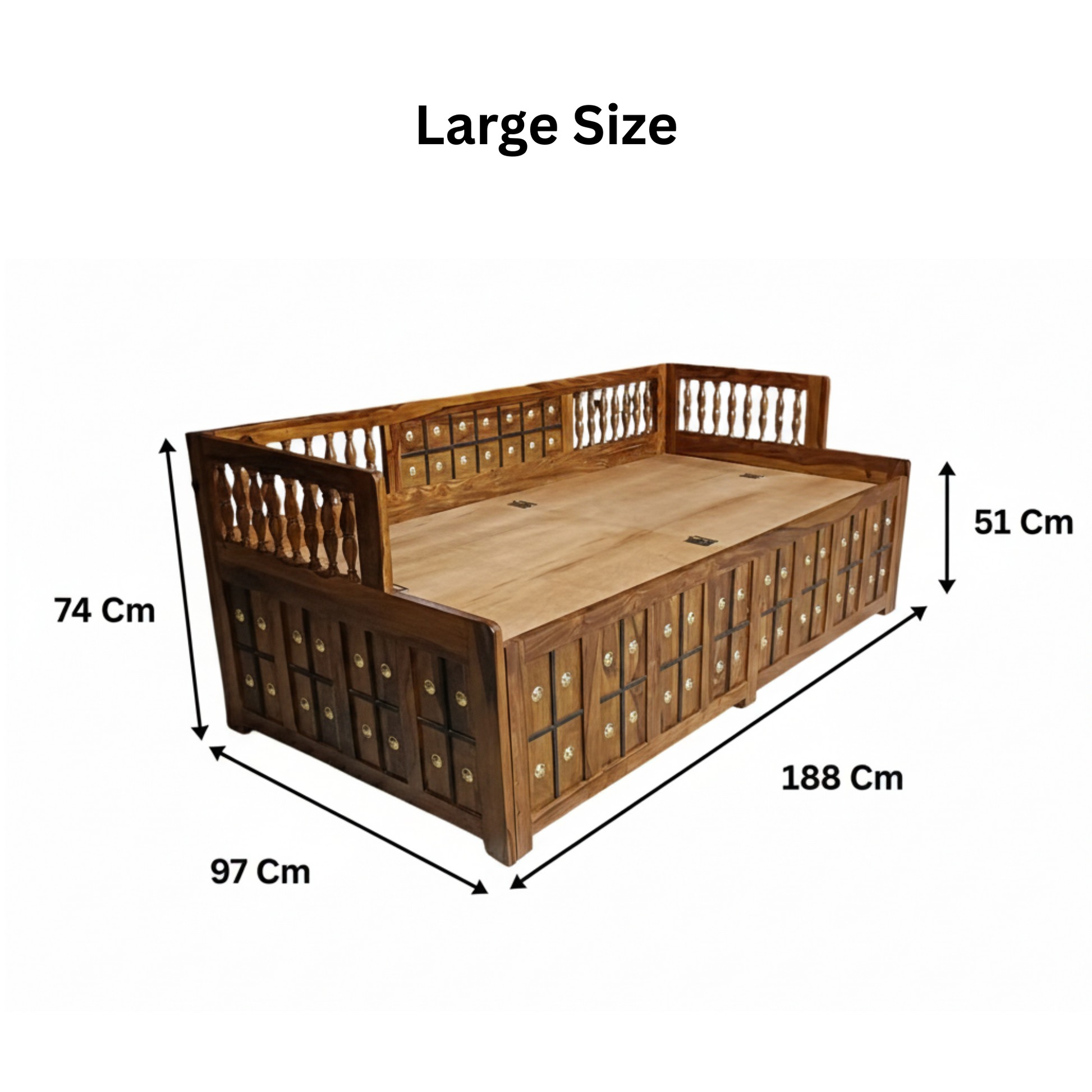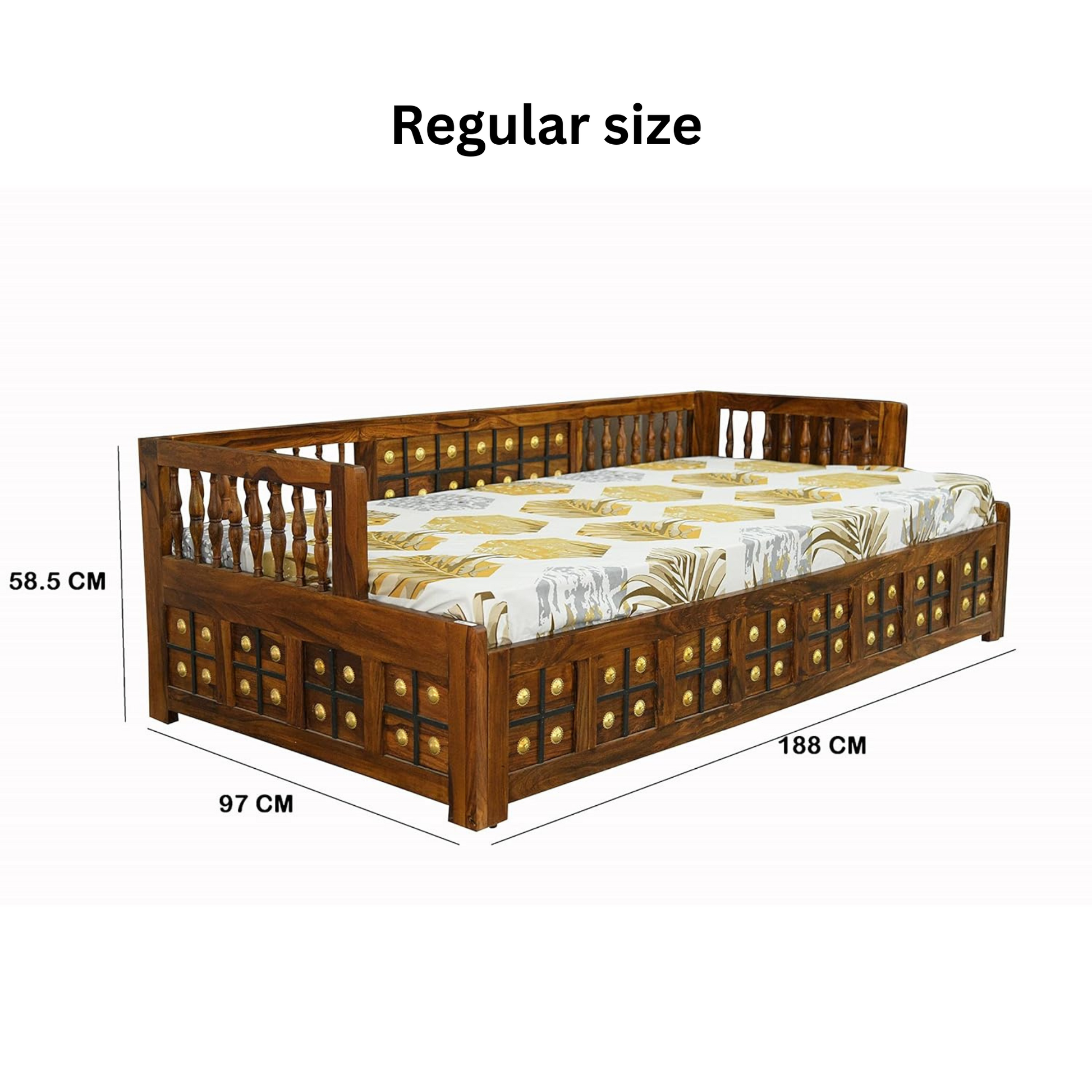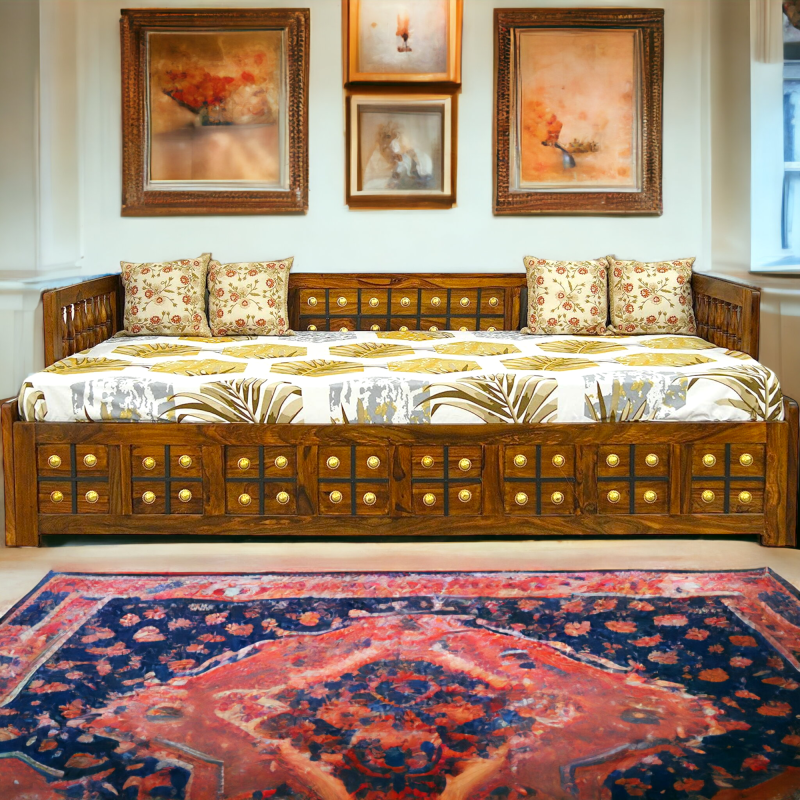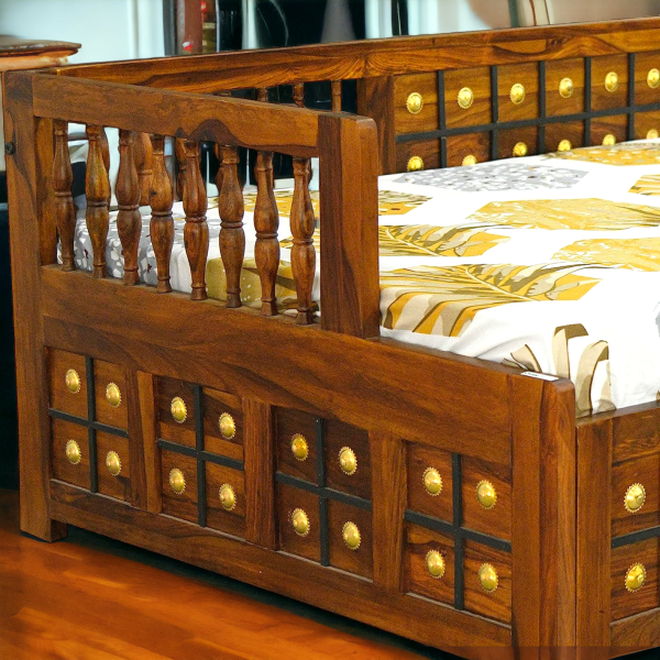 Suryavanshi Sheesham Wood Diwan Bed with Box Storage – Brass Work