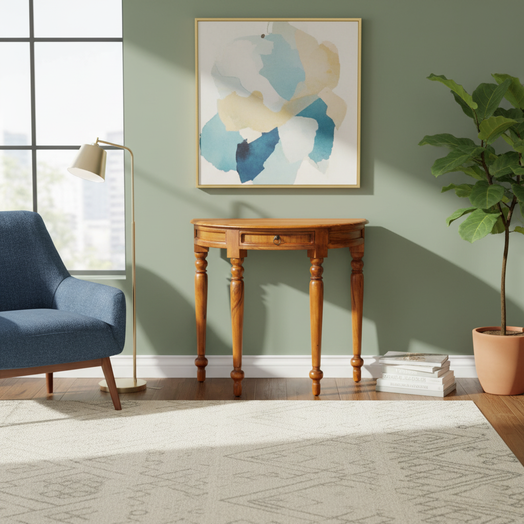 Suryavanshi Sheesham Wood Half-Round Console Table with 1 Drawer – Stylish and Space-Saving (W90 x D40 x H76 cm)