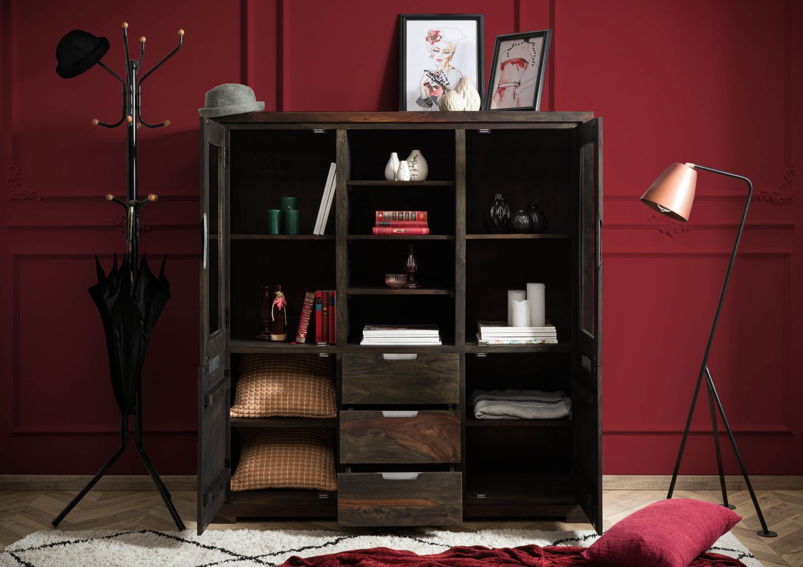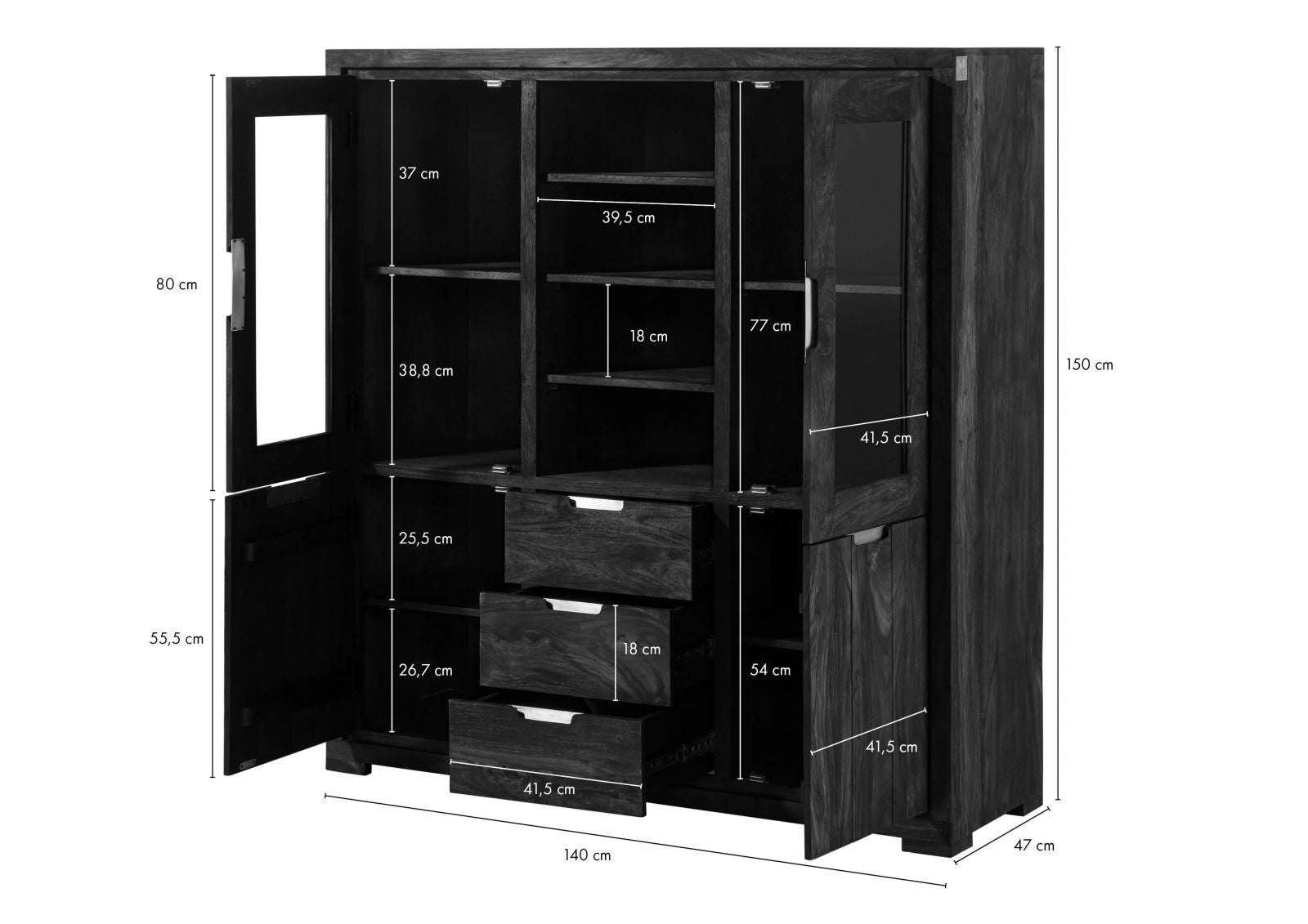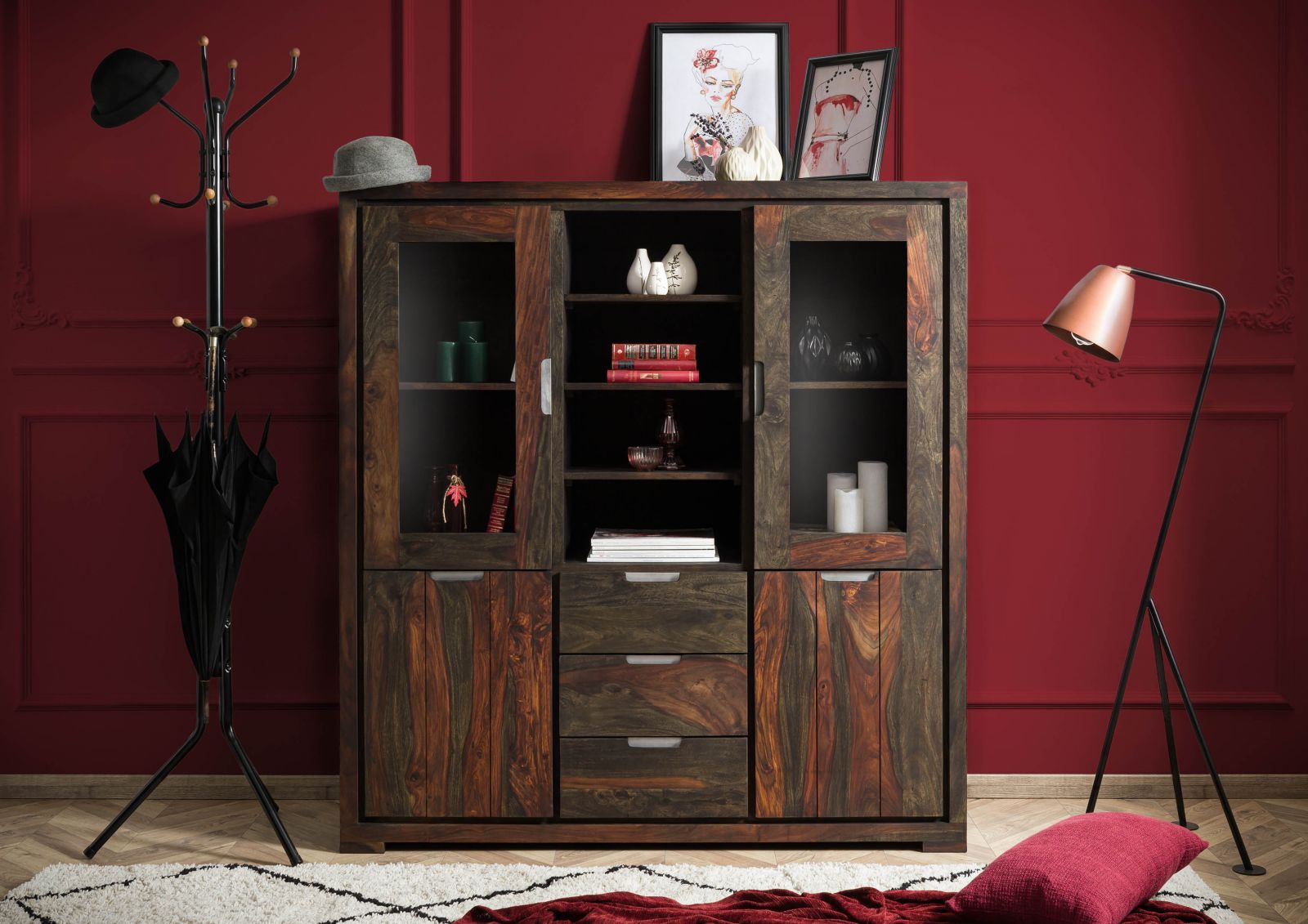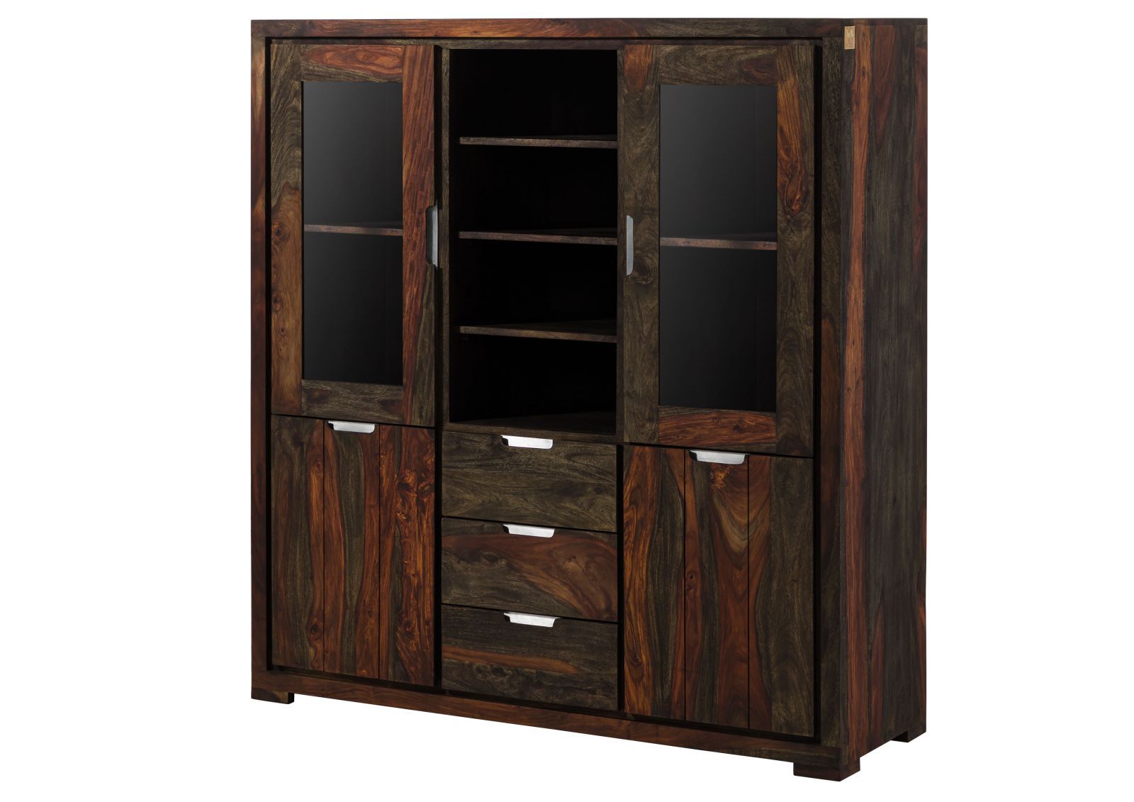 Suryavanshi Sheesham Wood Highboard with Glass Doors, 3 Drawers (heesham Wood, W140 D47 H150 cm)