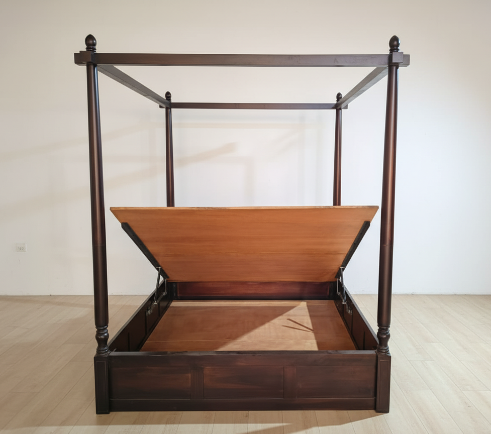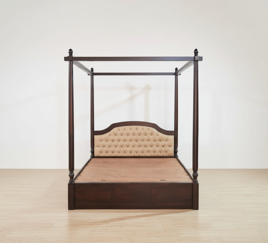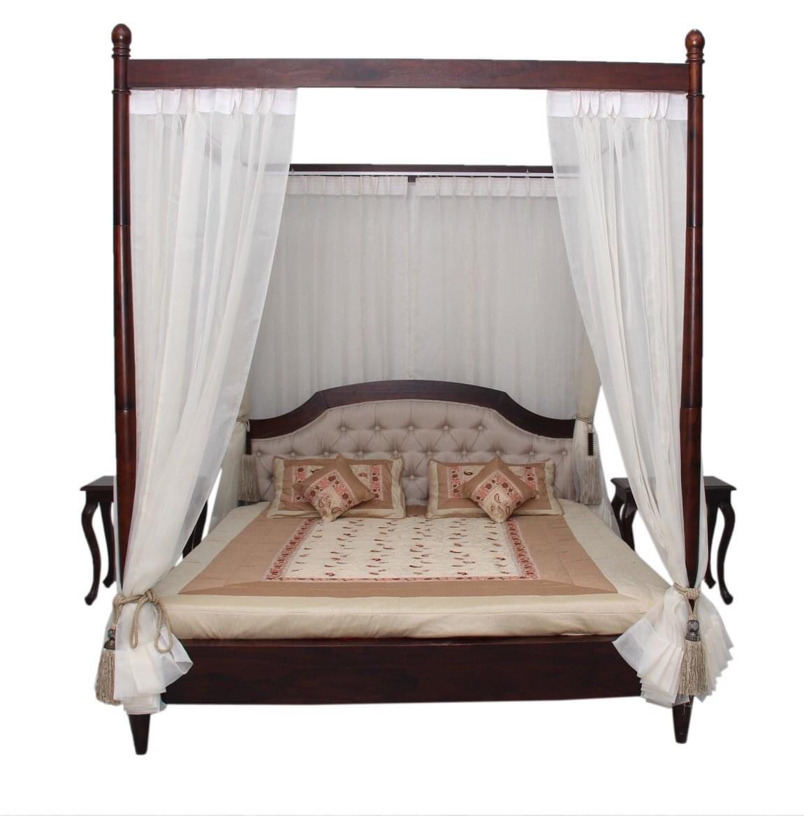 Suryavanshi Sheesham Wood King Size Poster Bed: Regal Design and Plush Comfort