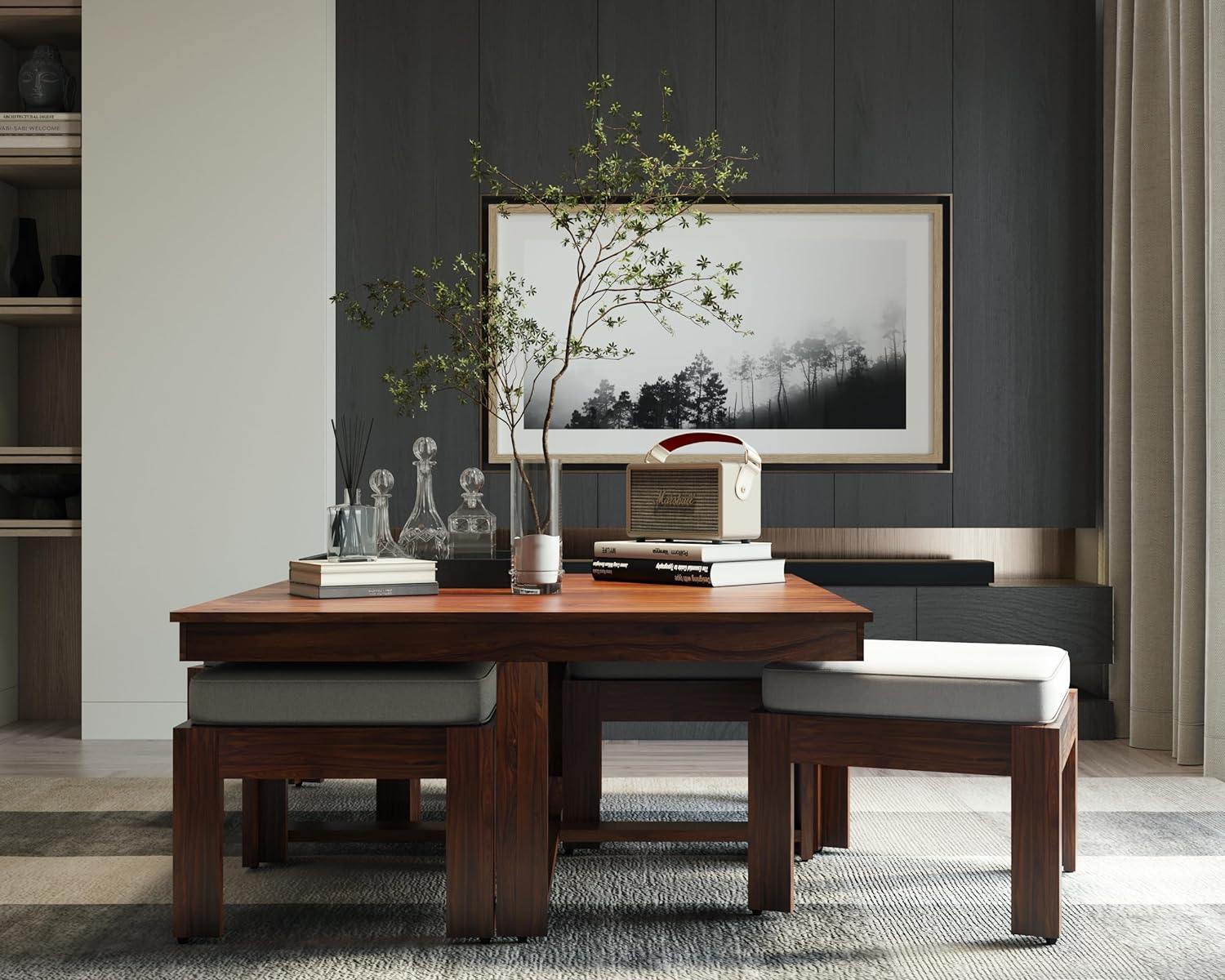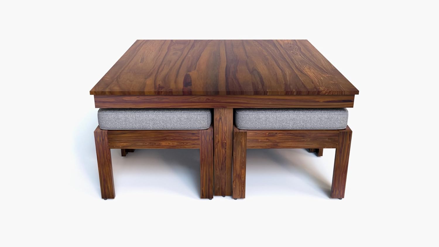 Suryavanshi Sheesham Wood Low Height Coffee Table with 4 Stools (W96*D96*H47cm)