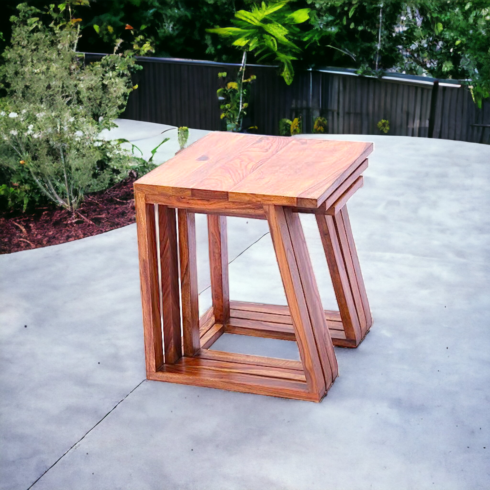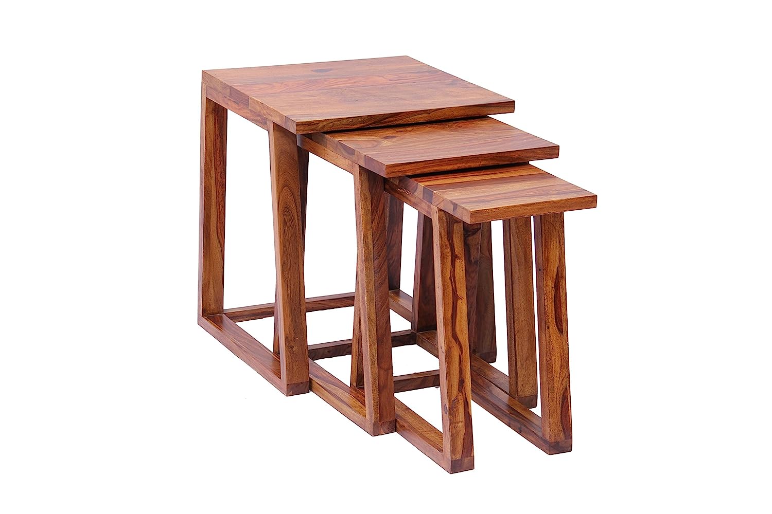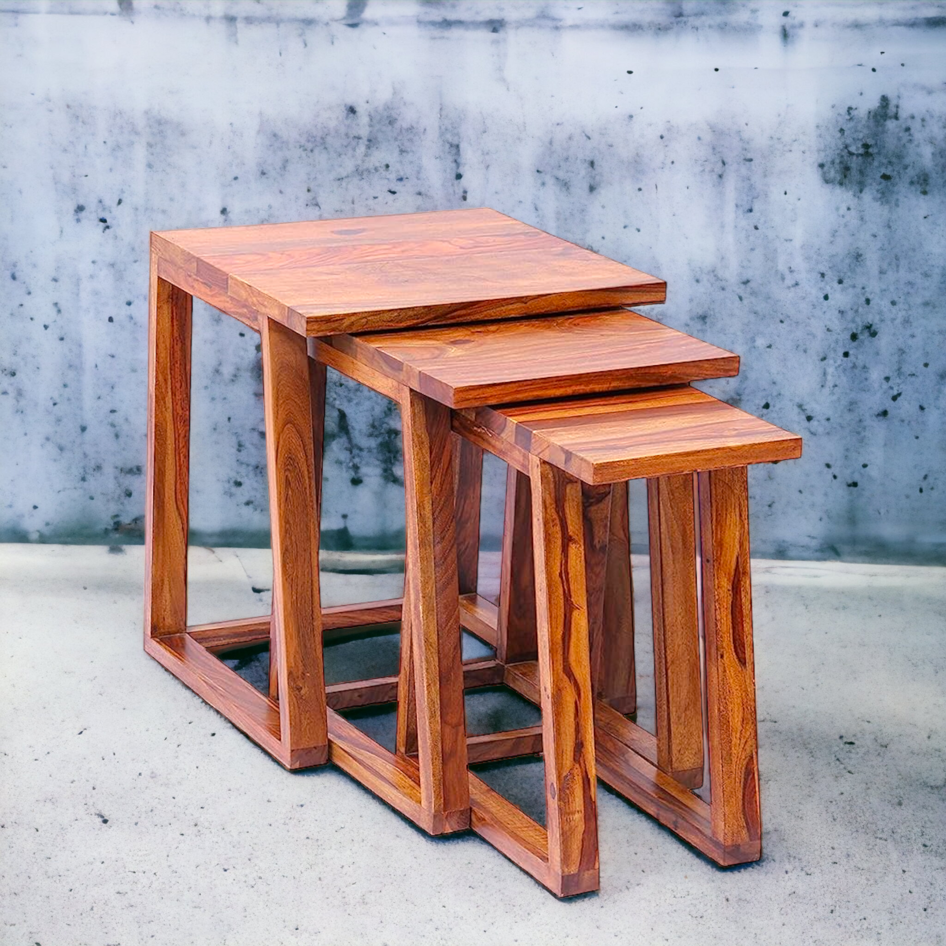 SURYAVANSHI Sheesham Wood Nest of 3 Tables – Stackable and Versatile (W48 x D45 x H48 cm)