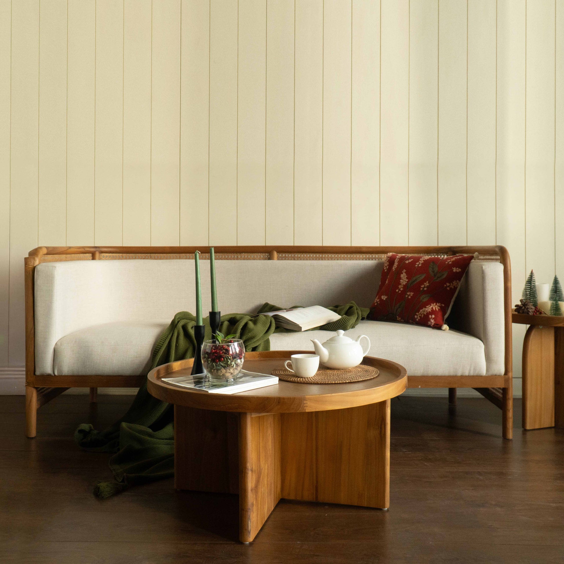 Suryavanshi Solid Acacia Wood Round Coffee Table for Living Room | Natural Finish Center Table with Modern Cross-Leg Base | Handcrafted Wooden Accent Table
