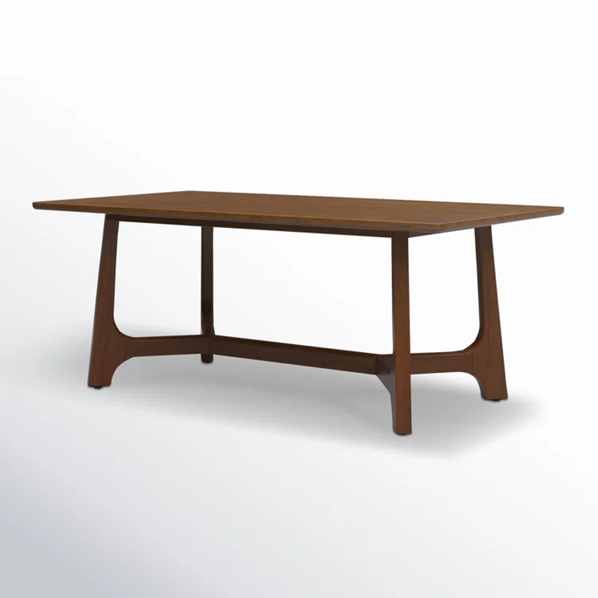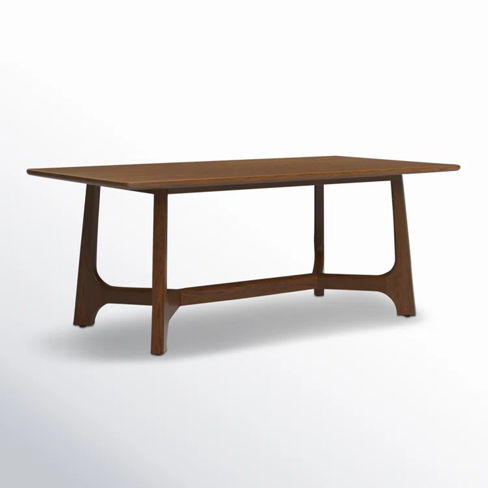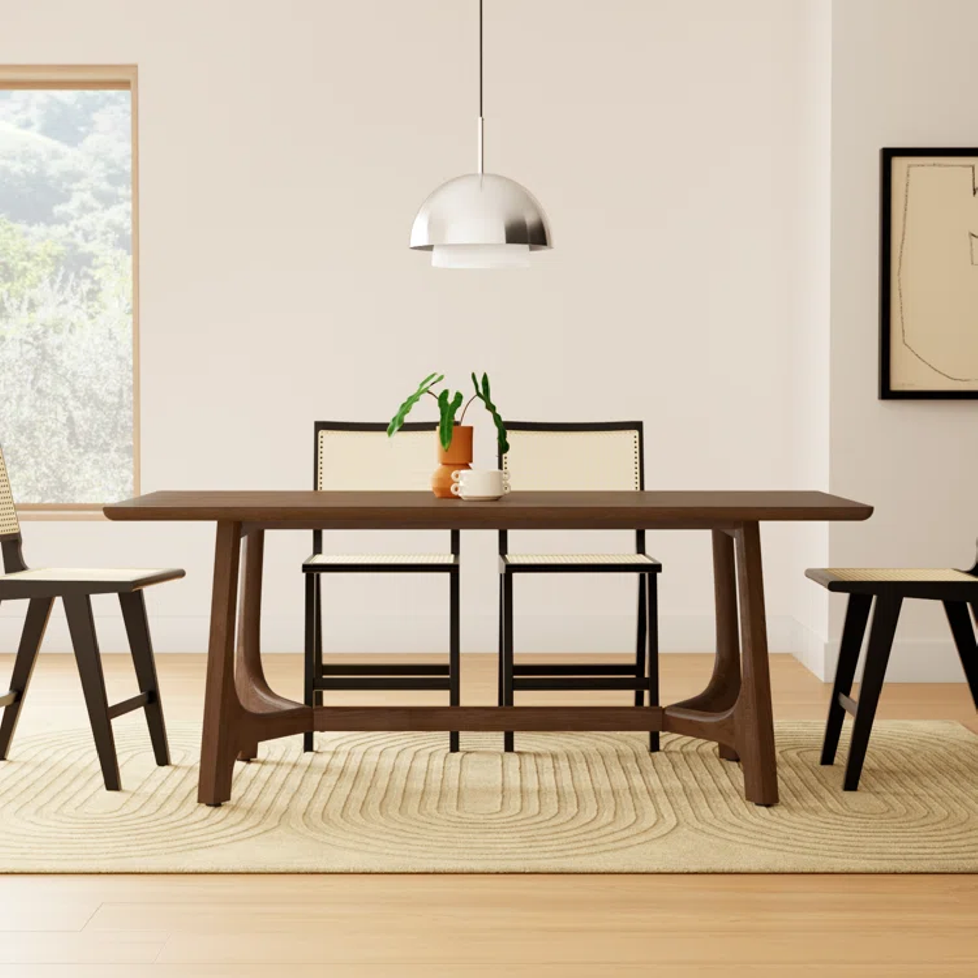 Suryavanshi Solid Mango Wood 6 Seater Dining Table for Home | Dark Mahogany Finish Rectangular Table | Modern Trestle Base Wooden Dining Table for Kitchen & Dining Room